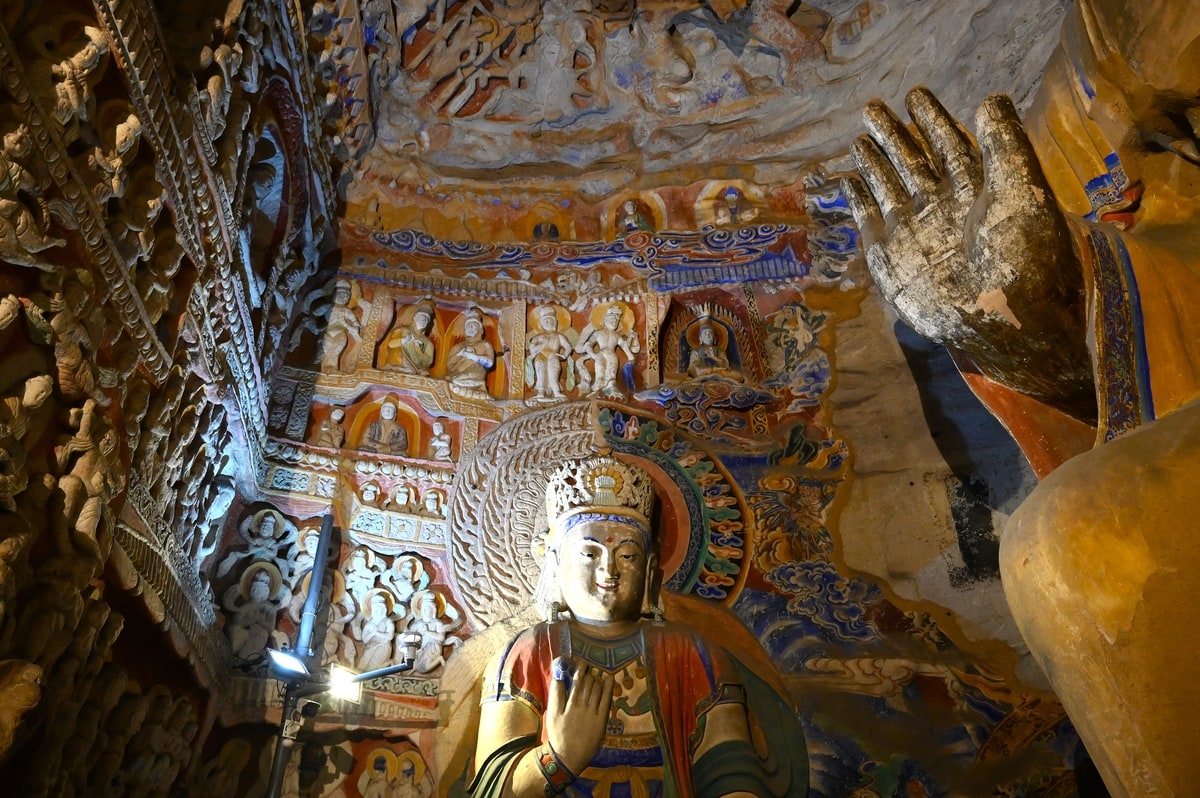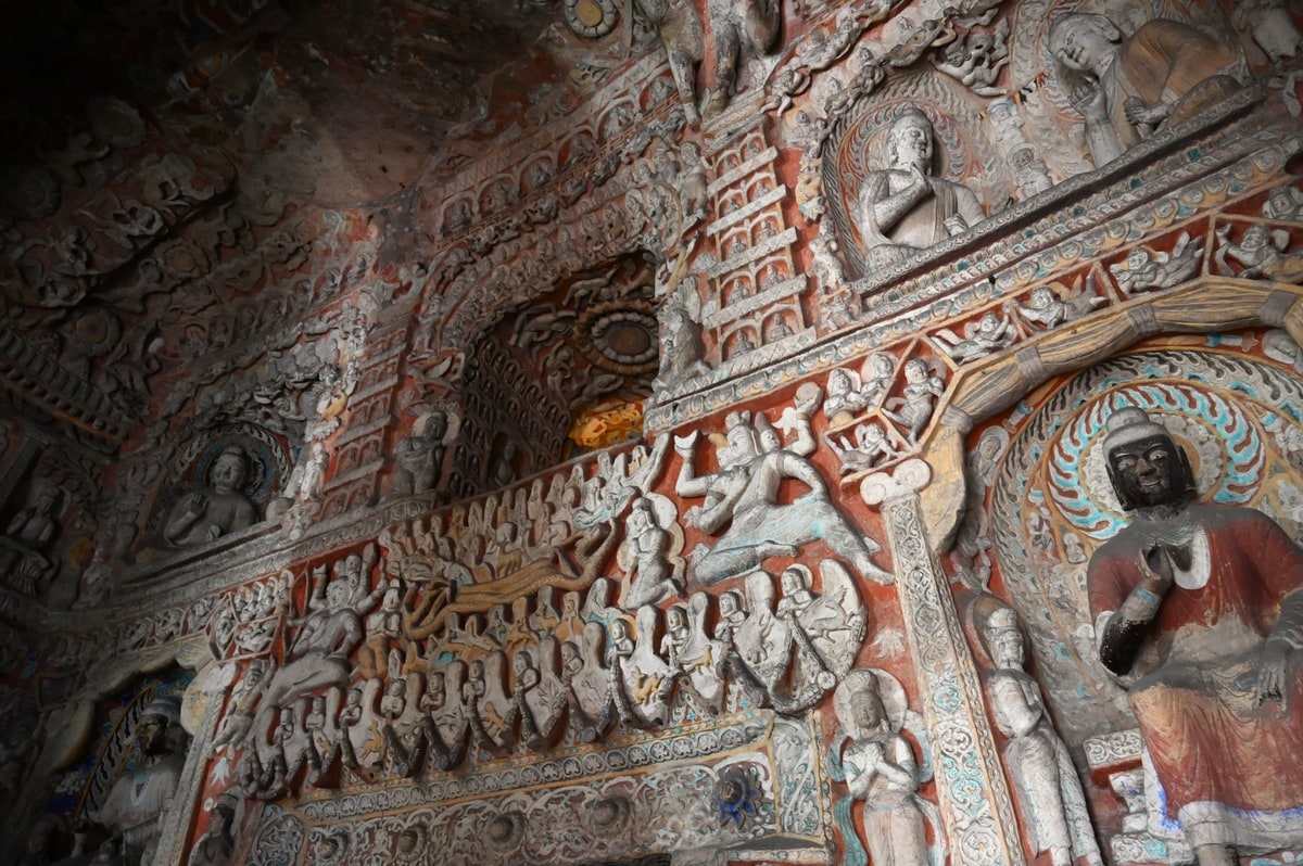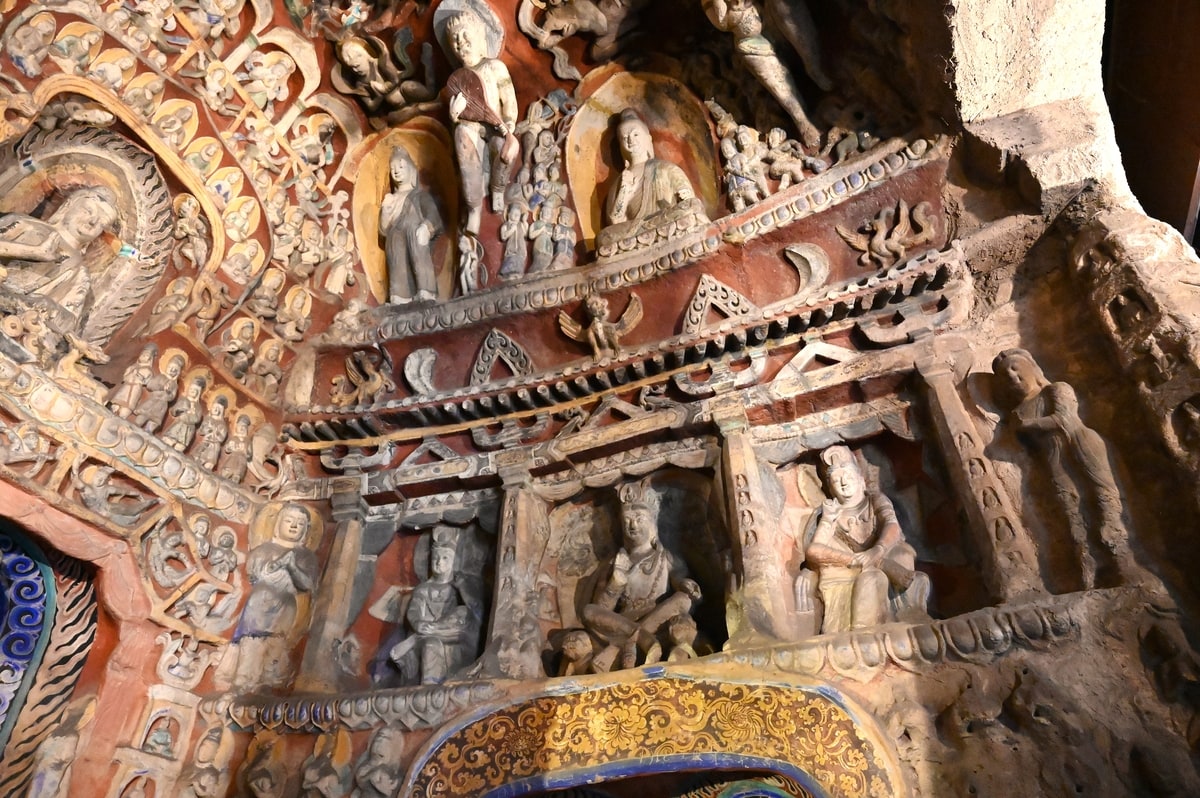 雲岡石窟の洞窟の柱はギリシャ風でもあり、描かれた紋様はペルシャ風でもあり、シルクロードの多様な文化を見ることもできる。しかし、雲岡石窟のすばらしさはインド、パキスタン、ペルシャと西方文化が融合したガンダーラ美術を取り入れながらも、東洋の優美さ、穏やかさ、やさしさに溢れていることだろう。阿弥陀仏、釈迦牟尼仏、弥勒菩薩など仏像の顔の表情、口元の微笑などに東洋的な穏やかさ、やさしさを見ることができる。まさにシルクロードのきらめく宝石のような存在が雲岡石窟だろう。