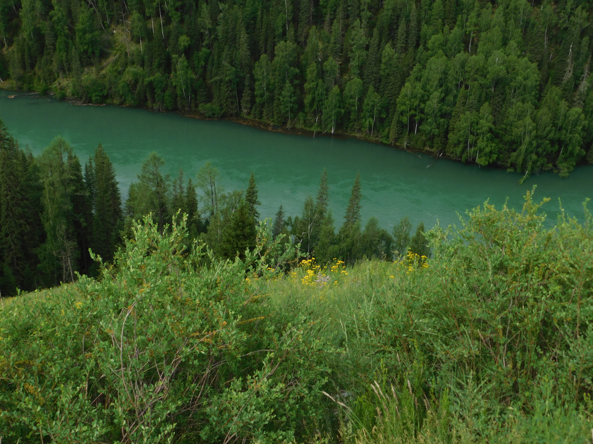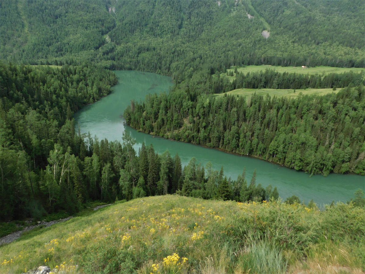 カナス川の緑をどう言い表せばいいのだろう。カナスの森と草原と川が共に緑を競い合い緑の曲を演奏している。“深緑”それではいいつくせない。緑の玉石、エメラルドの輝き、いやそれでもカナスの自然には失礼だろう。