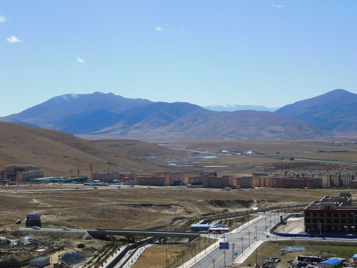 天路十八号の近くの山に大きくチベット語の祈りの文字が描かれ尾根の上に白いパオと1頭の馬が青空に浮かんでいる。絵のような風景を見ながら海抜4,429mのカツラ山峠を越えると理塘の街に着く。理塘は成都から654㎞、海抜4,014mにある人口7万人あまりの街である。住民は西蔵族が90%以上を占める世界最高所の街の一つである。理塘は藏語で“勒通”、勒は銅鏡、通は草原の盆地で銅鏡のように輝く草原を意味する。唐の時代には吐蕃(トバン)のチベット王朝の支配下にあった。真夏の7月でも平均気温は10度ほどである。三世ダライラマも訪れたという理塘寺がある。近くには海抜6,204mの格聶(クニエ)神山がある。海抜4千mを越える峠をいくつも越えているとここがチベット、青海から続く青蔵高原の一部であることを実感する。理塘の街は真っ青な空の下にあった。