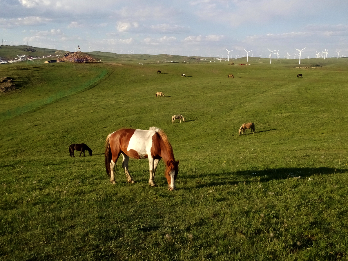 草原と馬、地平線の向こうに並ぶ風車、そのすべてが多彩な内モンゴルを演出している。