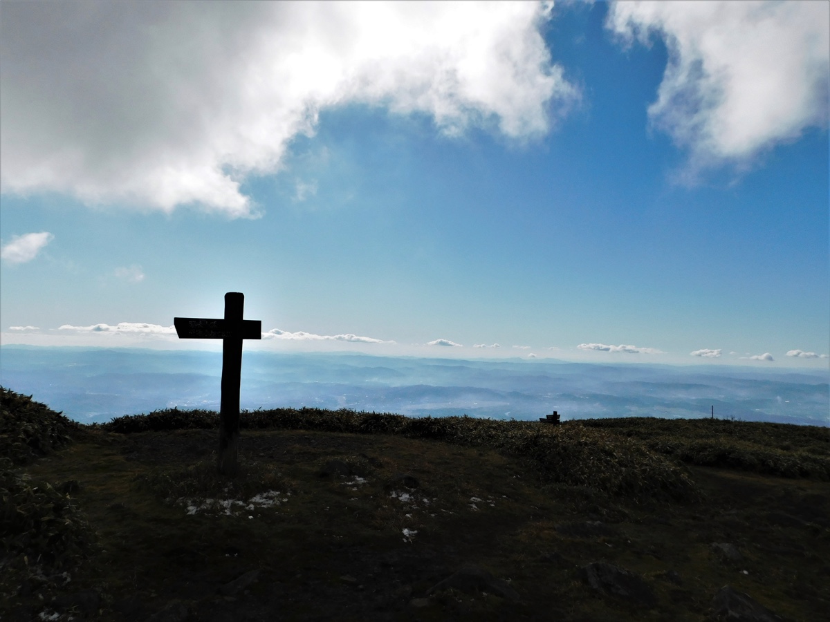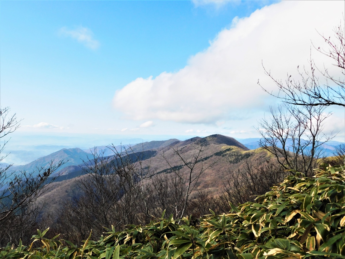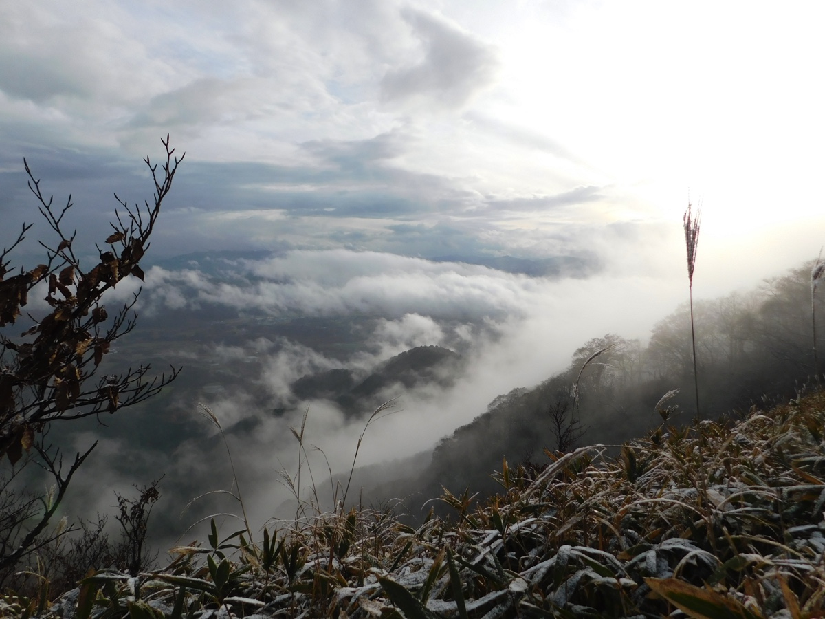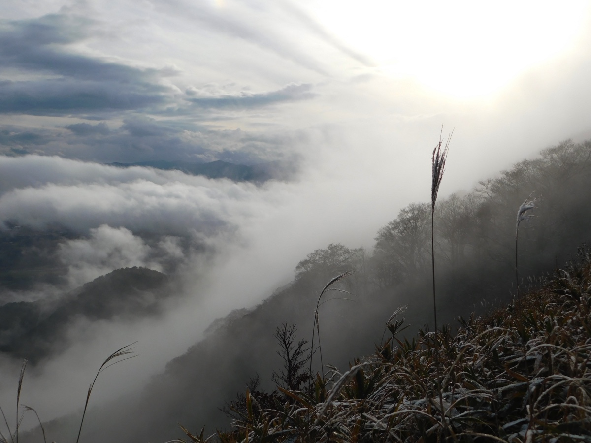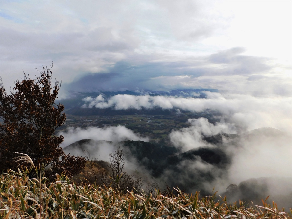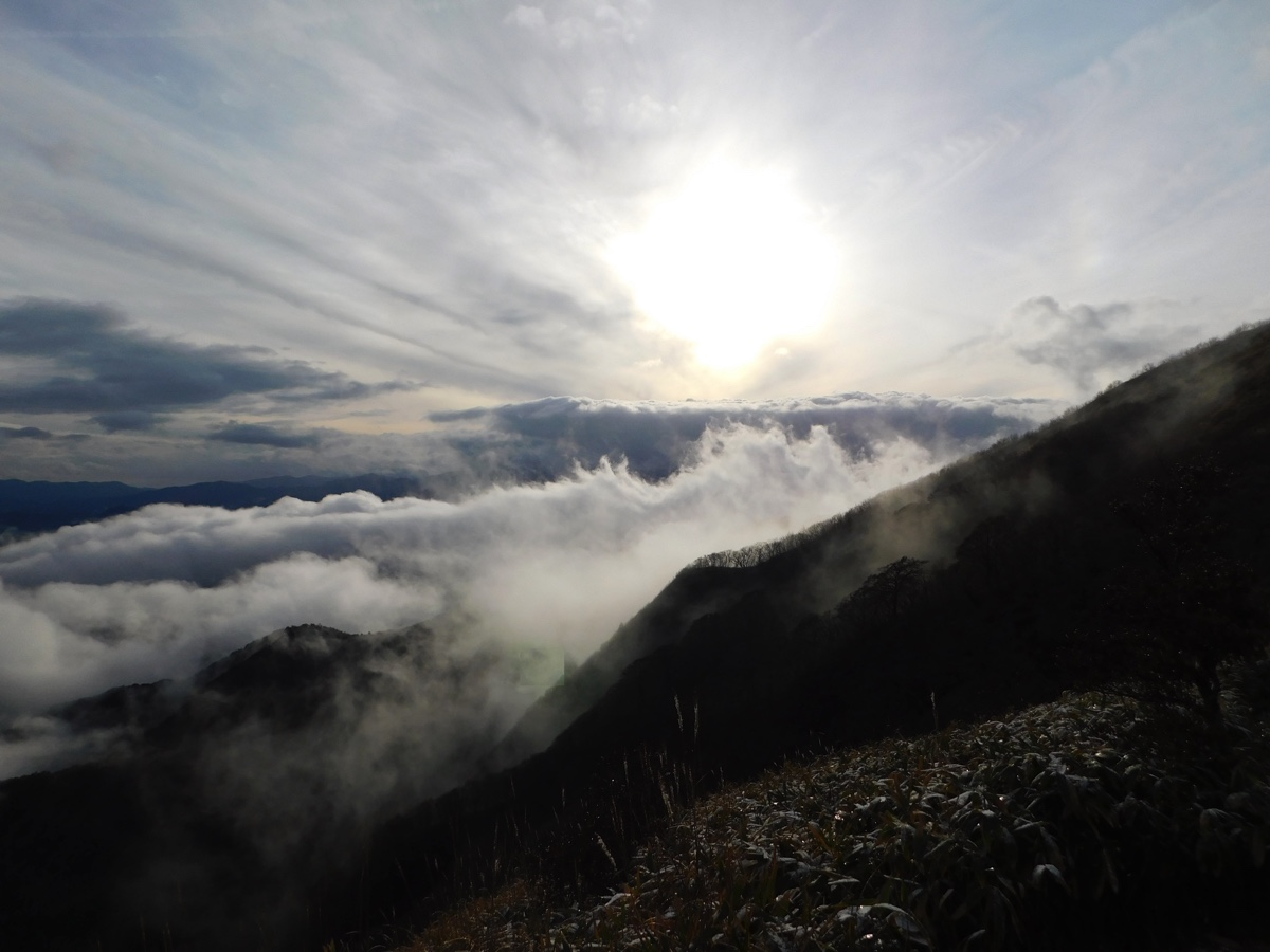 日本の西、中国地方の岡山県と鳥取県の境に蒜山高原があります。蒜山高原には蒜山三山と呼ばれる上蒜山、中蒜山、下蒜山の三つの山があり尾根で繋がっています。2018年の晩秋,下蒜山に登りました。その日はあいにく曇り空、登り始めると次第に空に雲が拡がり、山頂は小雪が降っていました。急いでおりかけた時、頂上近くで誰かが演出したように山の風景が変わり始めました。感動の一コマでした。そして下山を始めると、雲の切れ間から金色の蒜山を見ることができました。下蒜山に登った翌日、近くの那岐山に登りました。前日とは異なり麓は紅葉が美しく、おだやかな山容の那岐山の頂上からは360度、遠くは四国や京都の山々まで望むことができました。