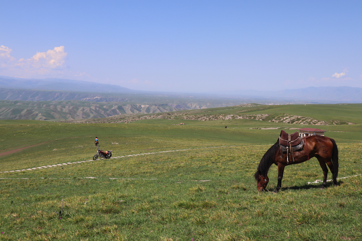 新疆の旅のもう一つの魅力は自然と共に生きる人の自然な姿に出会えることである。カナスの高原でゆっくりと馬を走らせるトゥバ族、朝餉の支度でトゥバ族やカザフ族の家々から立ち昇る煙、小さな花の帽子のドッパを頭につけたウィグルの可愛い女性、草原の白いパオと羊を追う人や砂漠で出会うラクダの群れ、そこには多様な民族の多彩な生活を見ることができる。そしてそこに多彩な食文化がある。羊やナン、同じ羊でも食べ方により味も違う。新疆麺のラグ麺、葡萄酒、ヨーグルトや甘酸っぱいヨーグルト飲料のドカップ、ミルクティ―、ハミウリや庫爾勒(コルラ)の香梨、阿圖什(アトシュ)のイチジク、リンゴ、2000年以上の歴史のある豊富なアンズなど、新疆で暮らす人々の多様な食文化がある。喀拉峻の草原の稜線に馬が並んで草を食んでいた。その向こうに雪の天山山脈が見える。そこには何百、何千年と暮らしの日々営みを続けてきた遊牧民族と天馬のおだやかな日々の姿があった。