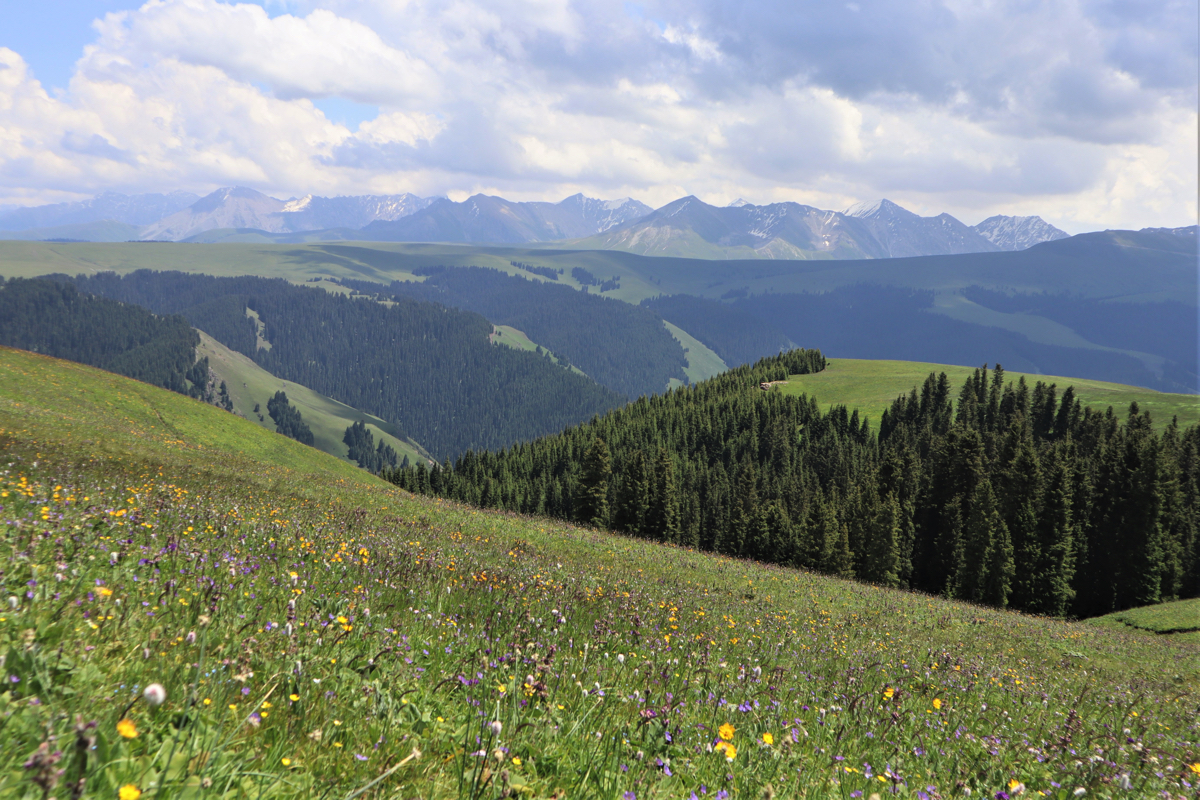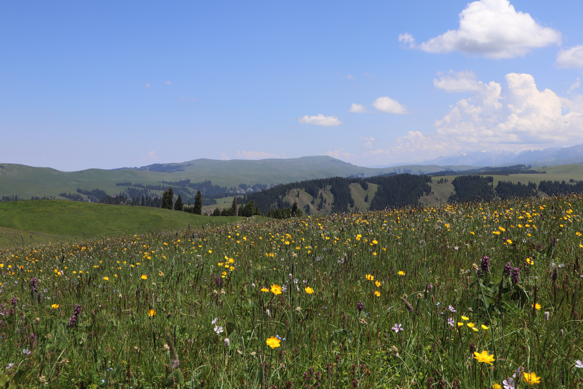 - 波打つ、花と深緑の大草原【喀拉峻(カラジュン)1】