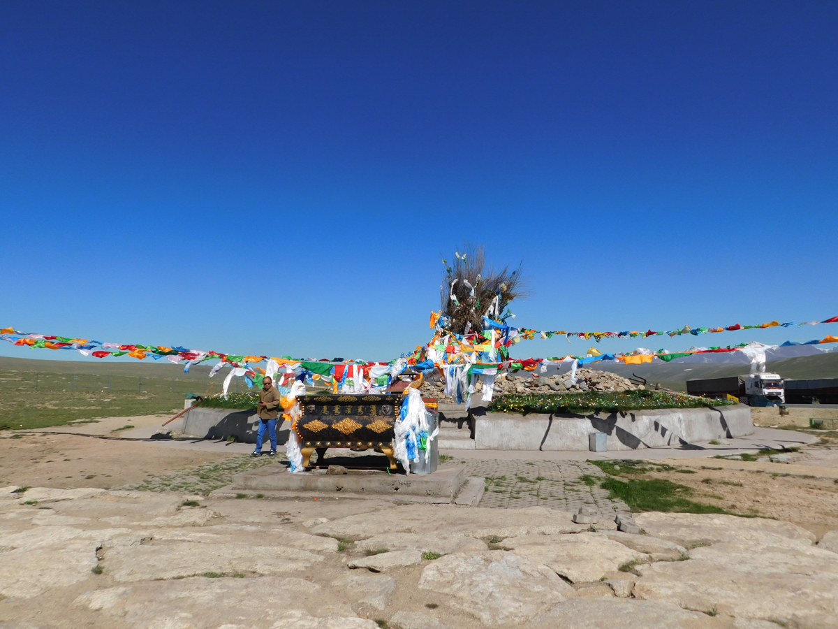 峠にはチベット仏教の五色の祈祷旗“風馬旗”が風に舞っていた。亀磁(キジ)国”の時代にもこの旗は舞っていたのだろうか。漢、唐の時代には多くの人が玉門関を越えてこの地に来ただろう。それはシルクロードの東西交易の旅だけでなく、果てしなく続く遊牧民、匈奴との戦いのためでもあった。そして多くの詩人が戦いの虚しさを詠った。王昌齢の「出塞」には「秦時明月漢時関 万里長征人未還」(秦の時から変わらぬ名月、漢の時代に築かれた関所、万里の地で戦う人はいまだに還らず)と詠んだ。王維は「九月九日憶山東兄弟」で「独在異郷為異客 毎逢佳節倍思親」(一人遠い異郷にあり異客となり、節句の日が来るたびに親、兄弟を思う)と詠んだ。李白は「万里長征戦 三軍尽衰老 匈奴以殺戮為耕作」(万里のかなたで長い戦いを続け、三軍の兵は皆老いて衰弱した、匈奴はまるで田を耕すように殺戮を行う)と詠んだ。「春光不度玉門間」(春の光は玉門関を越えては届かない)と言われた。洛陽の都からここまで3千㎞以上ある。たなびく“風馬旗”は古の人々の悲しみを今も伝えるように風になびいていた。