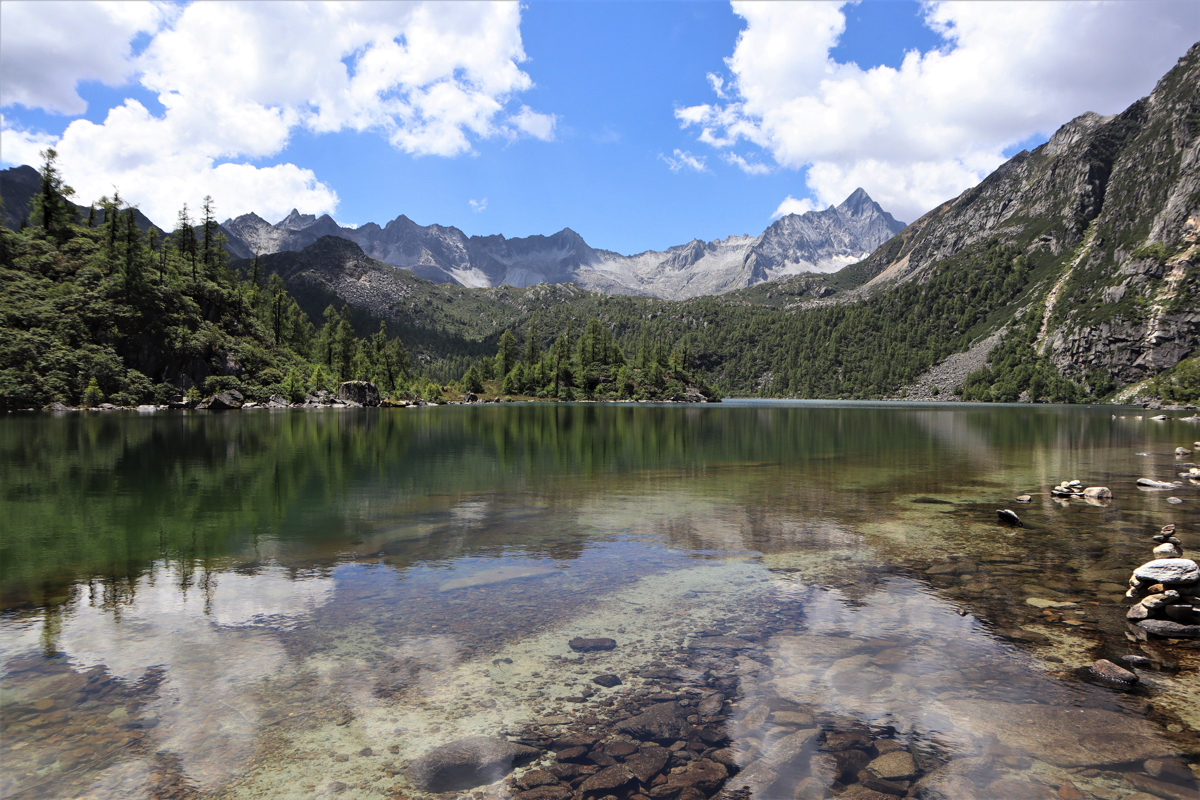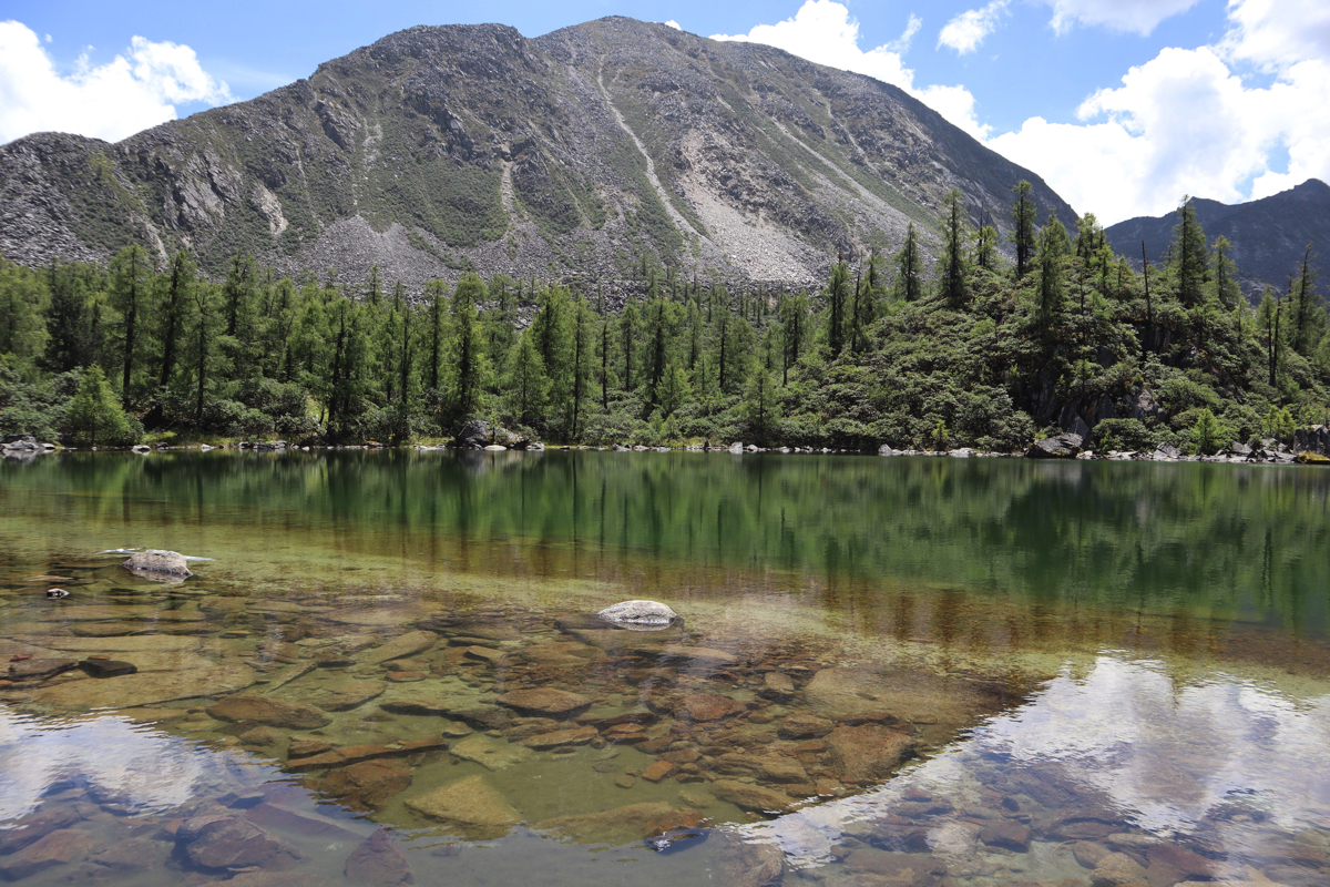 党嶺村から900mの高低差を3時間ほどかけて登り海抜4,200mにある葫芦海に着いた。途中、出会う人もなく葫芦海は静寂の中で青い水を湛えていた。葫芦海は大雪山系にある一つ海抜5,470mの夏羌拉( シャチャンラ)を背景に碧水を湛える秘境の湖だった。夏羌拉は藏(チベット)語で“美女神仙”と言われ、2010年には日本の広島登山隊が登頂している。“美女神仙”なので、きっとそこには仙境を守る美しい女神がいるのだろう。夏羌拉は四川省にある大雪山系にある党嶺山脈の主峰で、党嶺山脈には海抜5千m以上の山が28ある。麓の蔵族の人たちにとって葫芦海は聖湖で、信仰の対象である。日本でも中国でも、山を登る時、この山はいつの季節が一番美しいのだろうと思うことがある。春の草木が芽生える頃の山、初夏の新緑、錦繍織りなす山、葉を落とし木々が寂しそうな初冬の山、冬の霧氷や樹氷、全てに趣がある。葫芦海は秋、冬にどんなに姿を変えるのだろうか。それを想像し、再び紅葉や樹氷を見に訪れたい。そんなことを思いながら湖を後にした。