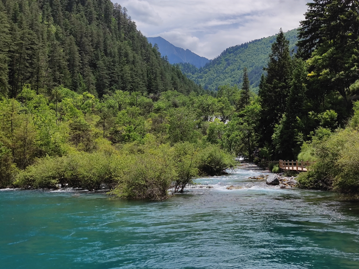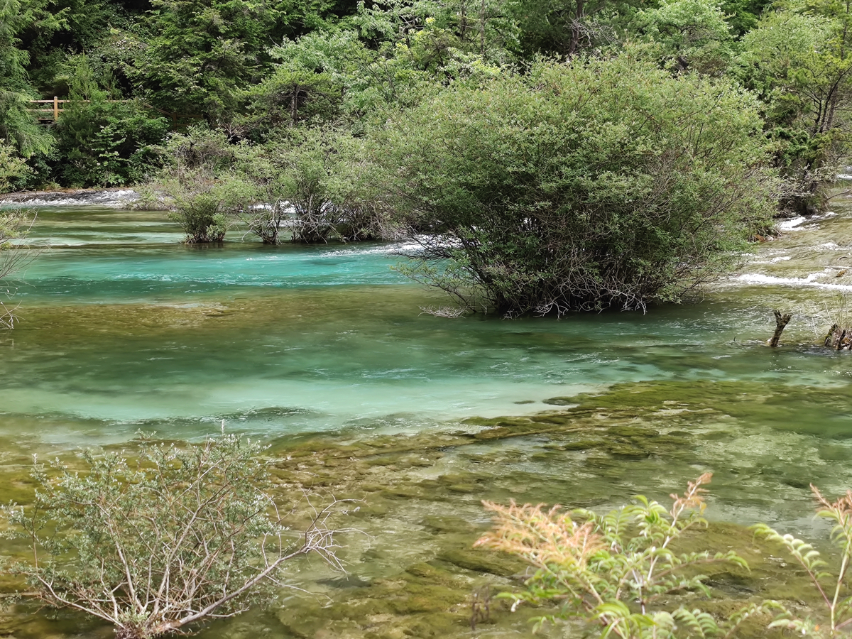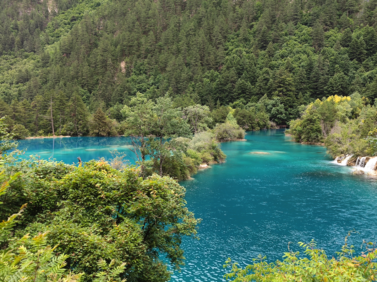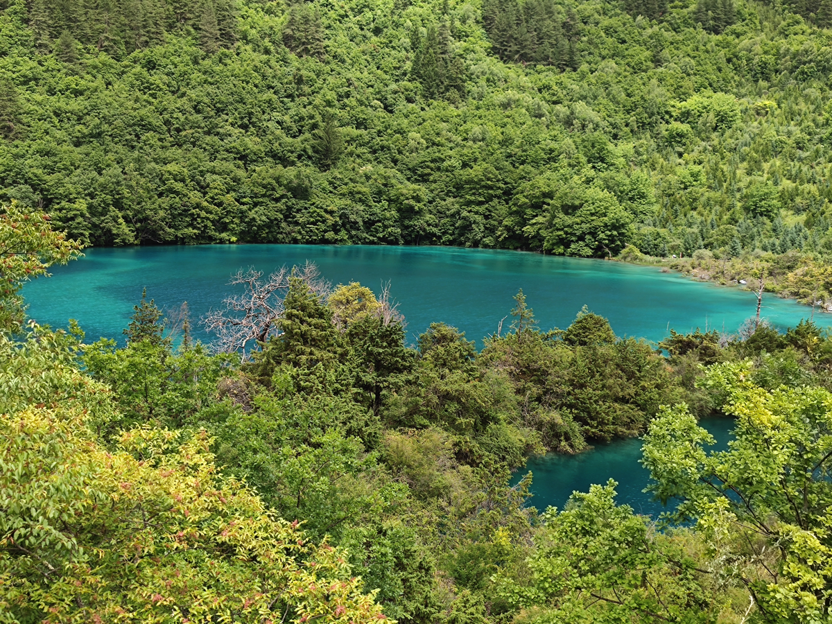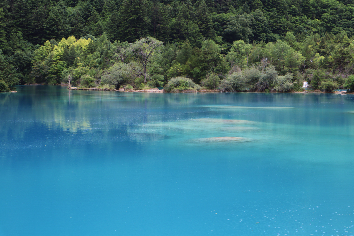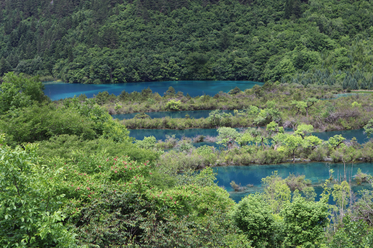 九寨溝の景勝地は、樹正溝、日則溝、則査洼溝の三つの渓谷に分かれ、五花海、xiniu海、五彩池、珍珠灘、諾日朗瀑布、樹正群海、熊猫海、芦葦海など多くの景勝地がある。現在開放されている地域は98㎞に及ぶ。熊猫(パンダ)海には本当にパンダが来て水を飲むという。そう言われれば、ここはパンダの生息域で、臥龍自然保護区にある大熊猫苑から450㎞ほどで、それほど遠い距離でもなくパンダがいるのもうなずける。