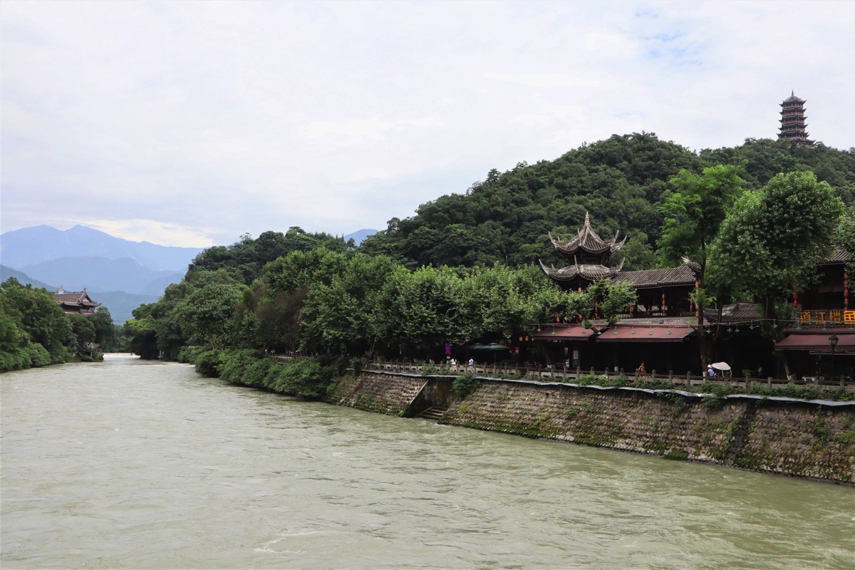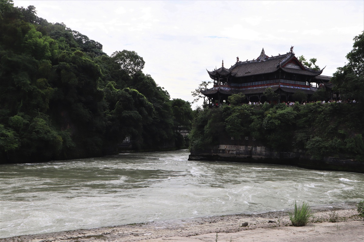 華棚溝から成都に戻る途中、世界文化遺産の都江堰に寄った。都江堰は二回目の訪問だった。前回は2008年の四川地震の翌年でまだ地震の爪痕が残っている時だった。四川地震は汶川(ウェンツェン)地震とも言われ汶川の近くが震源地である。華棚溝から都江堰に行き成都に戻るにはその汶川を通る。都江堰は成都平原の西を流れる岷江(ミンチャン)にある。