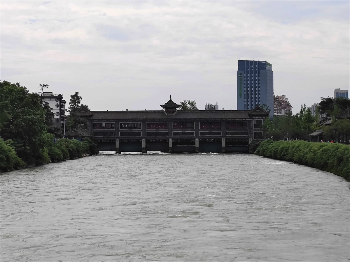 昔は岷江が氾濫すれば広大な成都平原は湖のようになった。岷江の水を分離して下流に流し洪水と灌漑を防ぎ現在も使用されている。