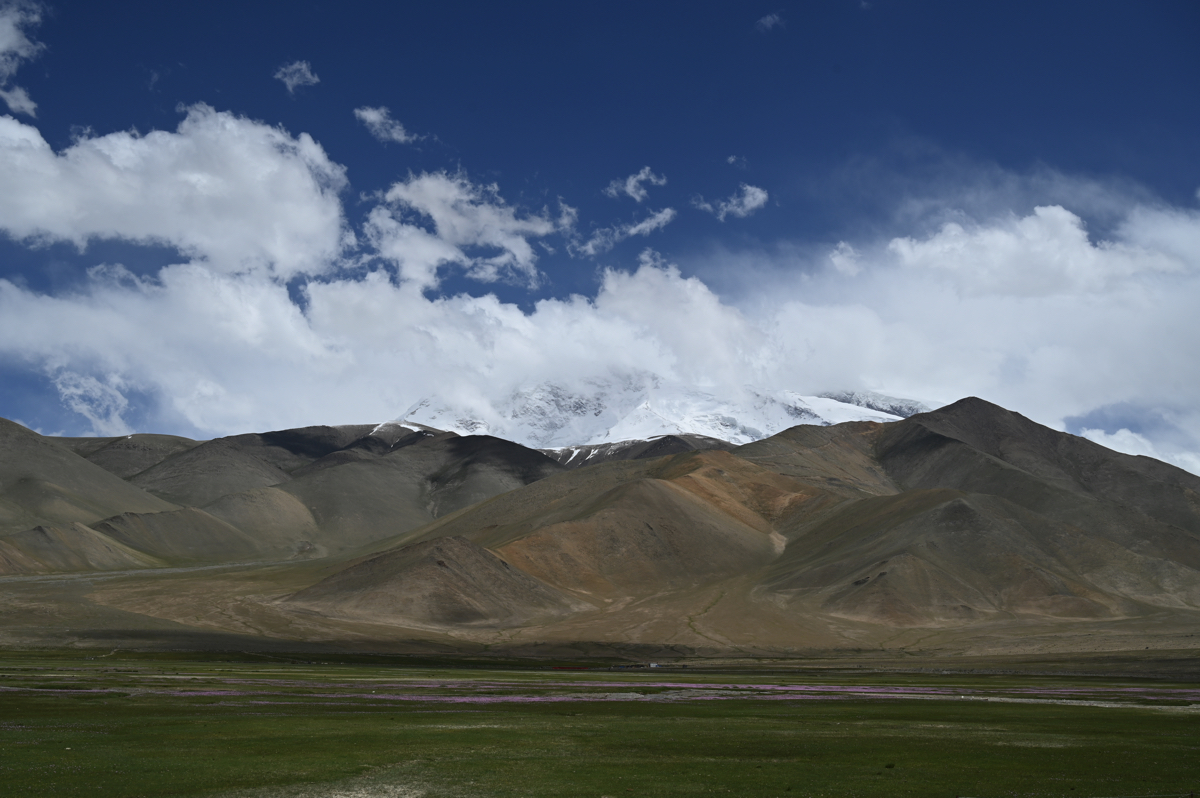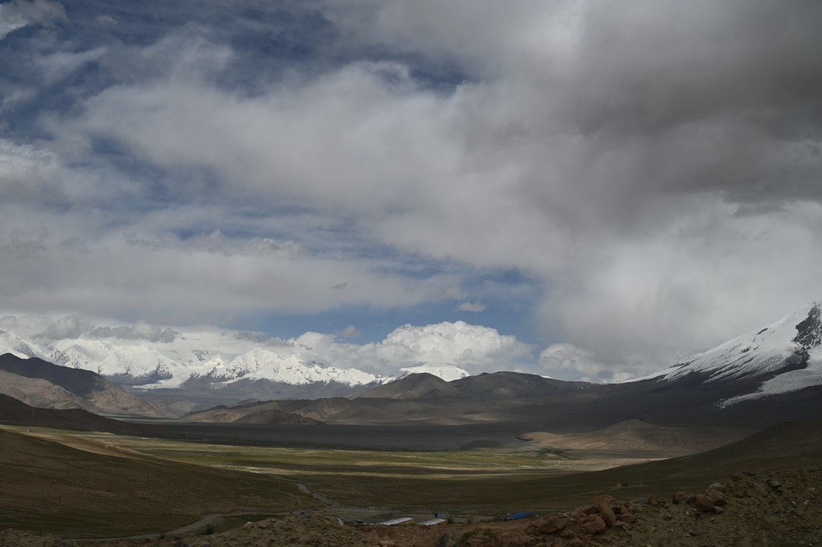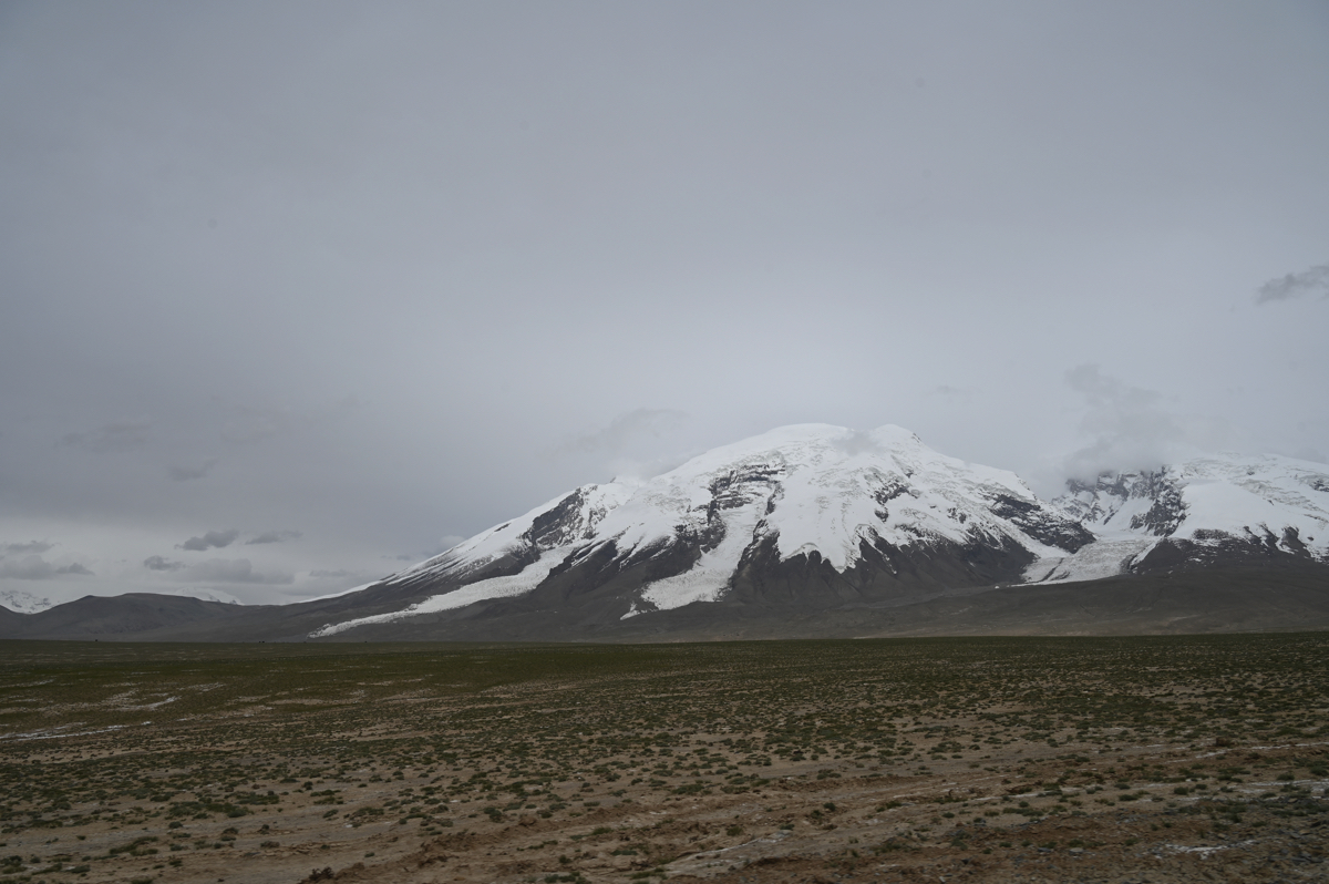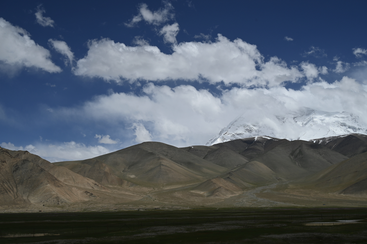 カラクリ湖の標高は3560mなので湖の向こうに聳える海抜7546mの幕士塔格(ムストク)峰はカラクリ湖湖畔から4000mの高さがある。静岡の三島あたりから見る富士山以上の高さである。しかしとてもそんな高さがあるように見えない。急いで登れば1日で戻ることができるのでは、との錯覚を覚える。不思議である。南側のなだらかな稜線がどこまでも続いているからだろうか。公格尓峰や幕士塔格峰の雪解け水は白沙湖、カラクリ湖に注ぎ、タリム川支流からタリム川に注ぎ、あるいは地下水ともなってタリム盆地を流れる。
