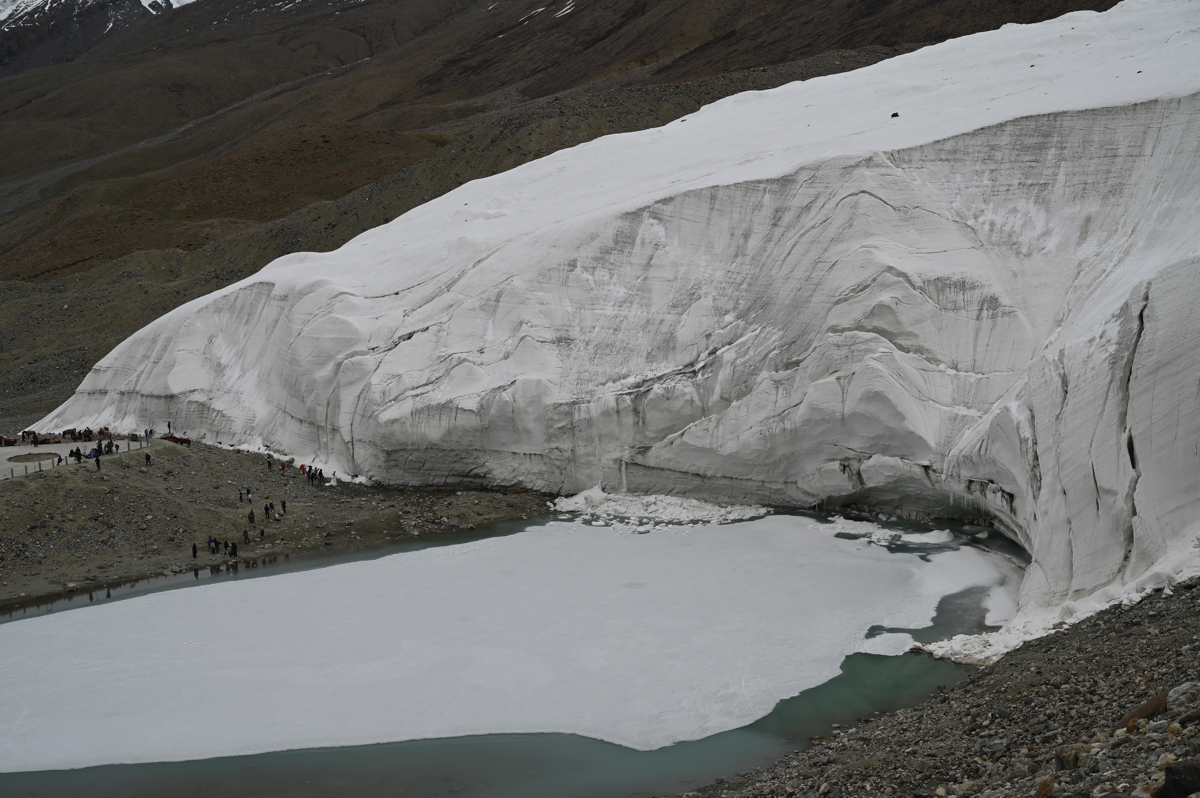 氷河の先端があるところは、平均海抜は4700~5000mほどで、景区玄関から専用車で氷河の下にいく。そこから30分~40分ほど歩いて登れば氷河の先端に行ける。馬もあり高山の登りなのできつい人は馬で行くこともできる。