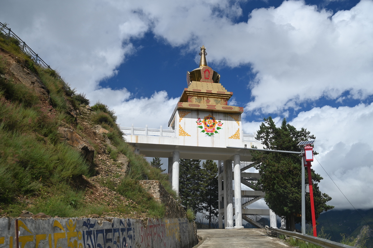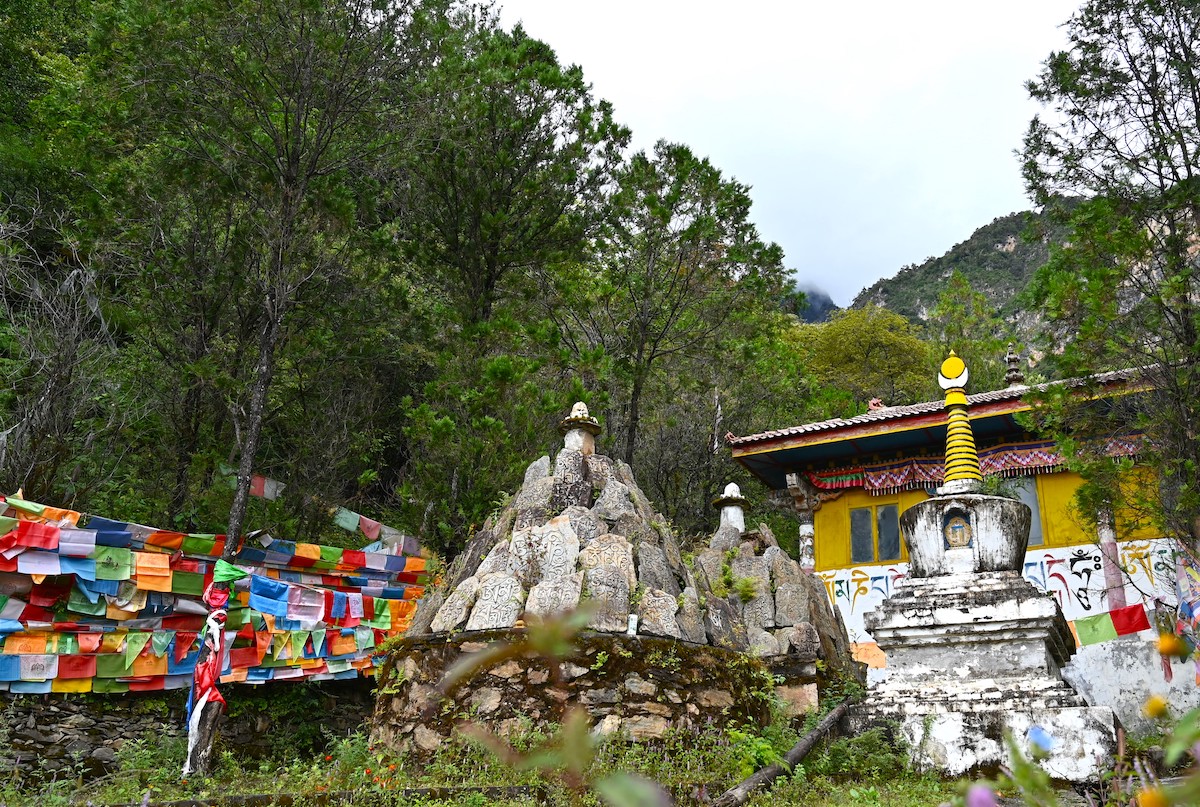 木里(muli)王国の守護寺、木里大寺を訪ねた。チベット仏教、黄教の寺院で、藏語の正式名は「木里甘丹喜珠曲勒朗巴吉瓦林」。建立は1656年で、“甲肅色拉”神山の麓、海抜2673mにある。弥勒、文殊、観音菩薩像が祀られている。境内には建立当時の木里大寺の遺跡もある。石を積み上げた祭壇、「瑪尼堆」(マニトゥイ)を囲む旗が風になびいていた。マニトゥイは藏語(チベット語)で「朶帮」(ドゥパン)と言い、悪霊や禍を防ぎ追い払う祭壇である。大きな「瑪尼堆」や道端にひっそりと置かれた小さな「瑪尼堆」などいろいろある。