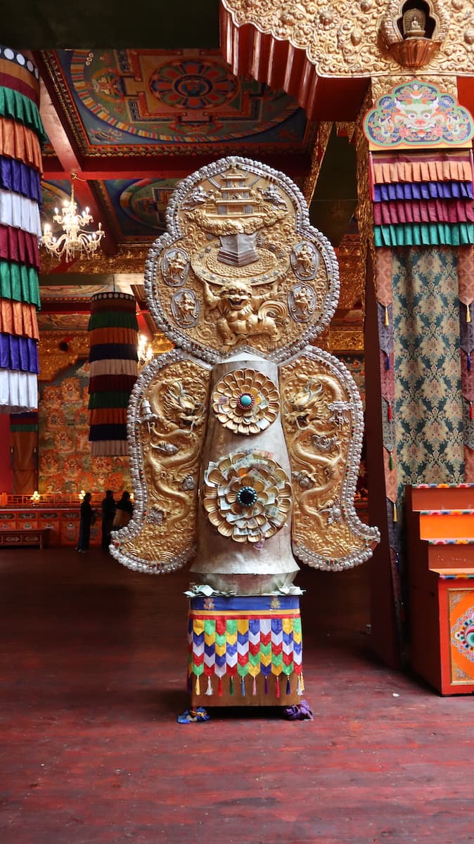 十明佛学院のある山頂付近には様々な寺院の施設、学院の施設と居住区があり、それらを回っているだけで時間が経つのを忘れる。多くの寺院の見学も許されている。大きな寺院に祀られている黄金の仏像は圧倒される。世界三大金剛座と言われているのはインドブッダ・ガヤのマハボディ寺院と中国五台山、もう一つがこの十明佛学院、ガ陀寺だそうである。中心にある金色の寺院が金剛座の象徴とされているようだ。海抜5,000mの山で輝きを放っていた。