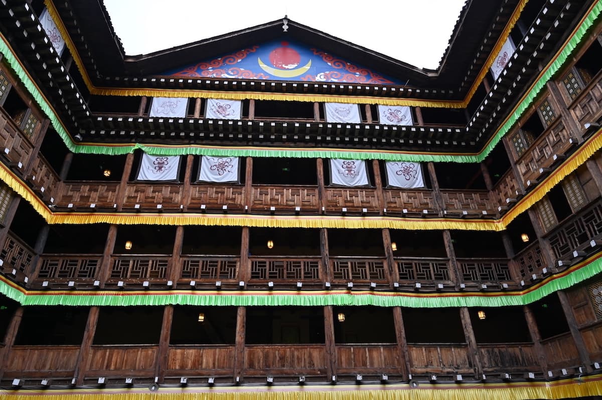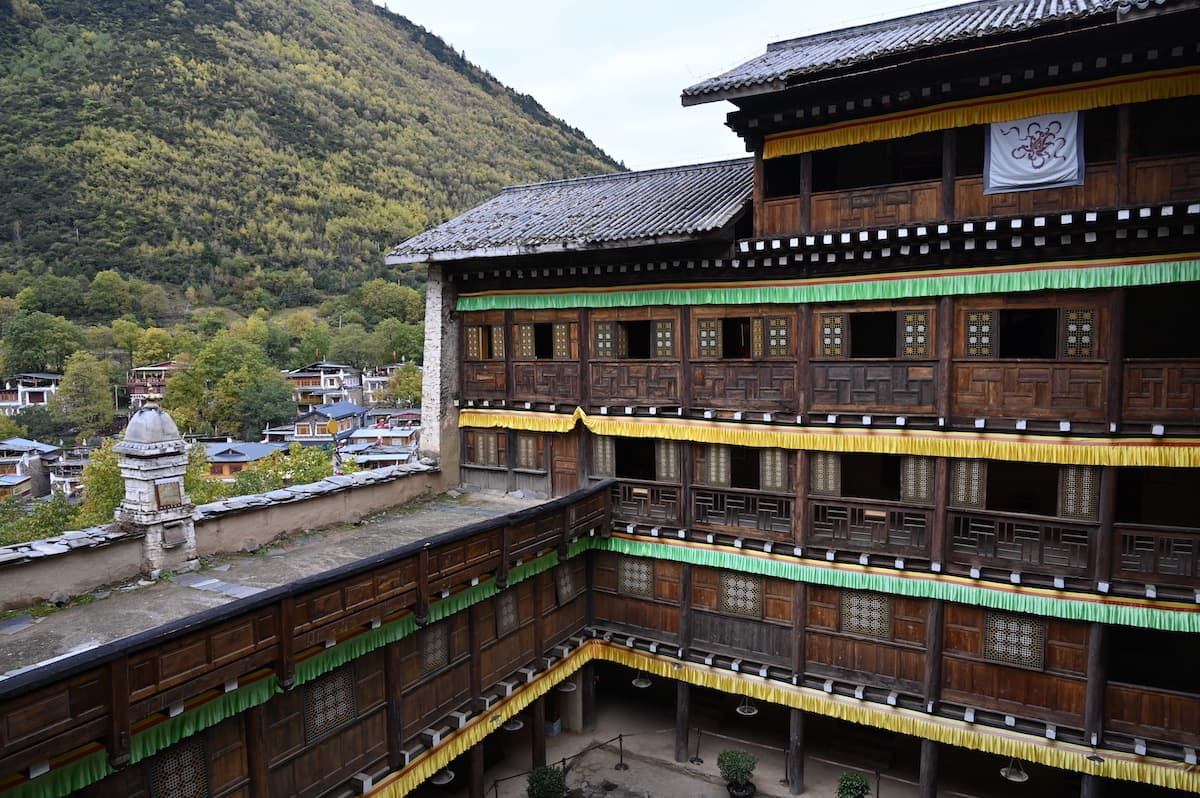 卓克基士司官寨は清朝康煕年間に建てられた建物が1936年に焼失、現在の卓克基士司官寨は第十六代の族長が再建したものである。建物の敷地面積は5400㎡、中庭を囲む四合院の形式で建てられ、北の棟は6階、東西は5階建てで、大小63の部屋がある。大きな仏間、大経堂も2間、大きな応接間もある。