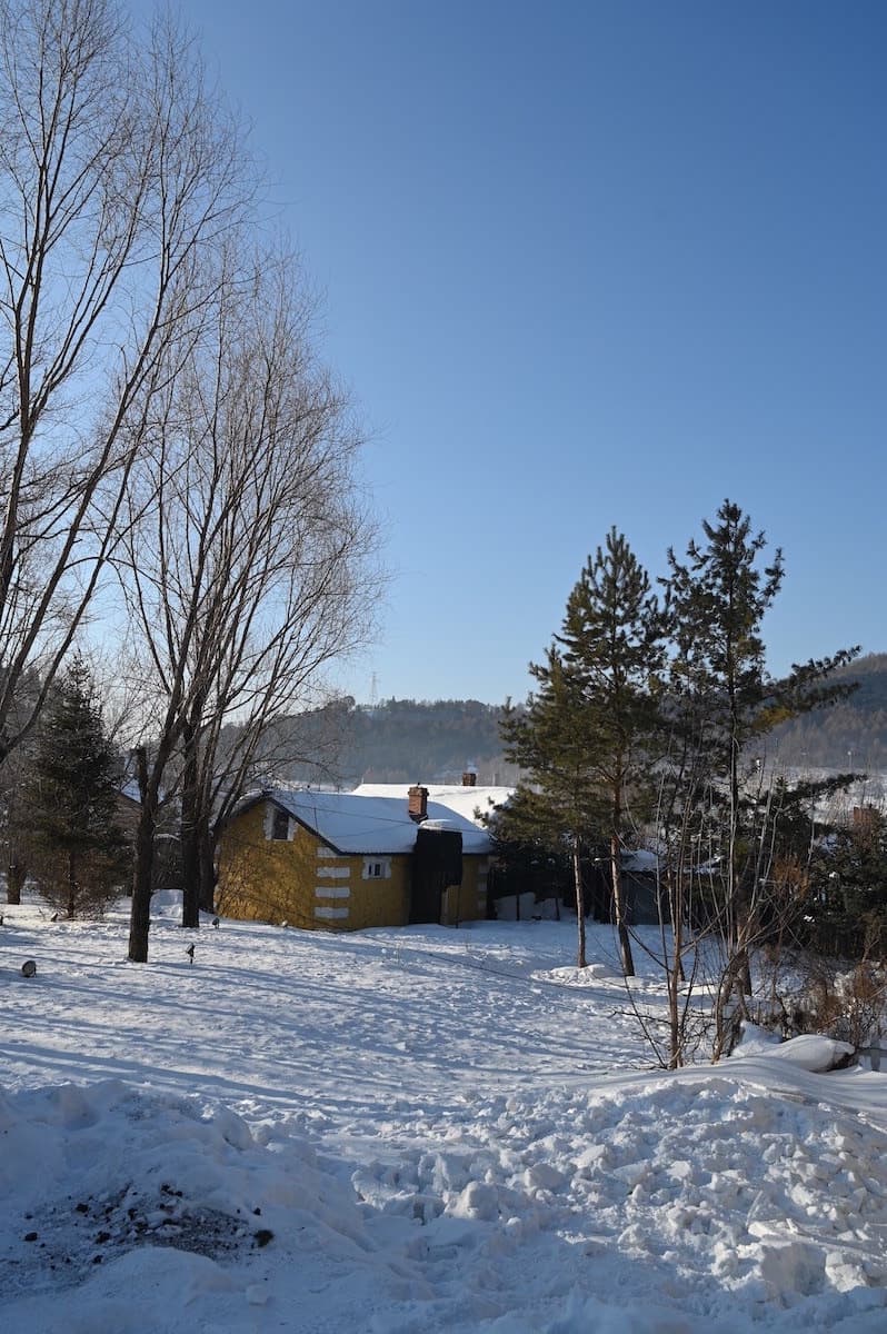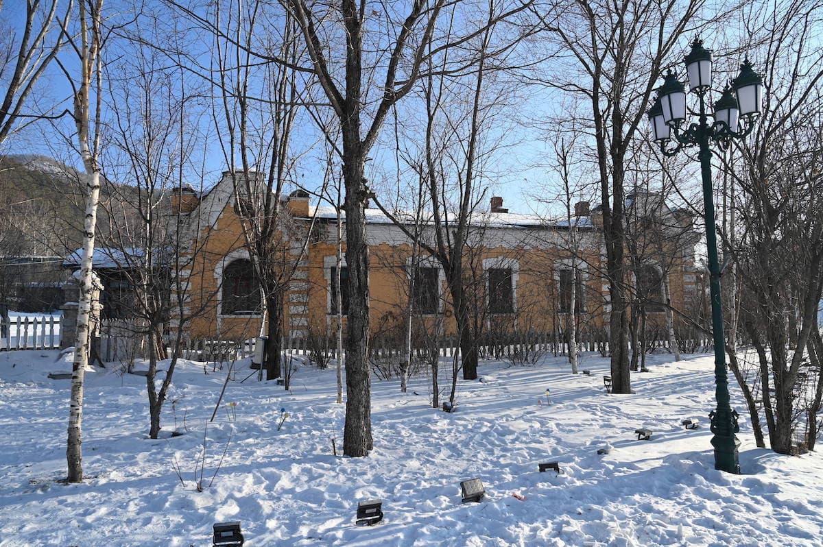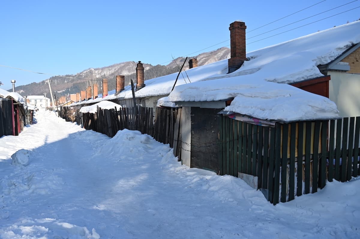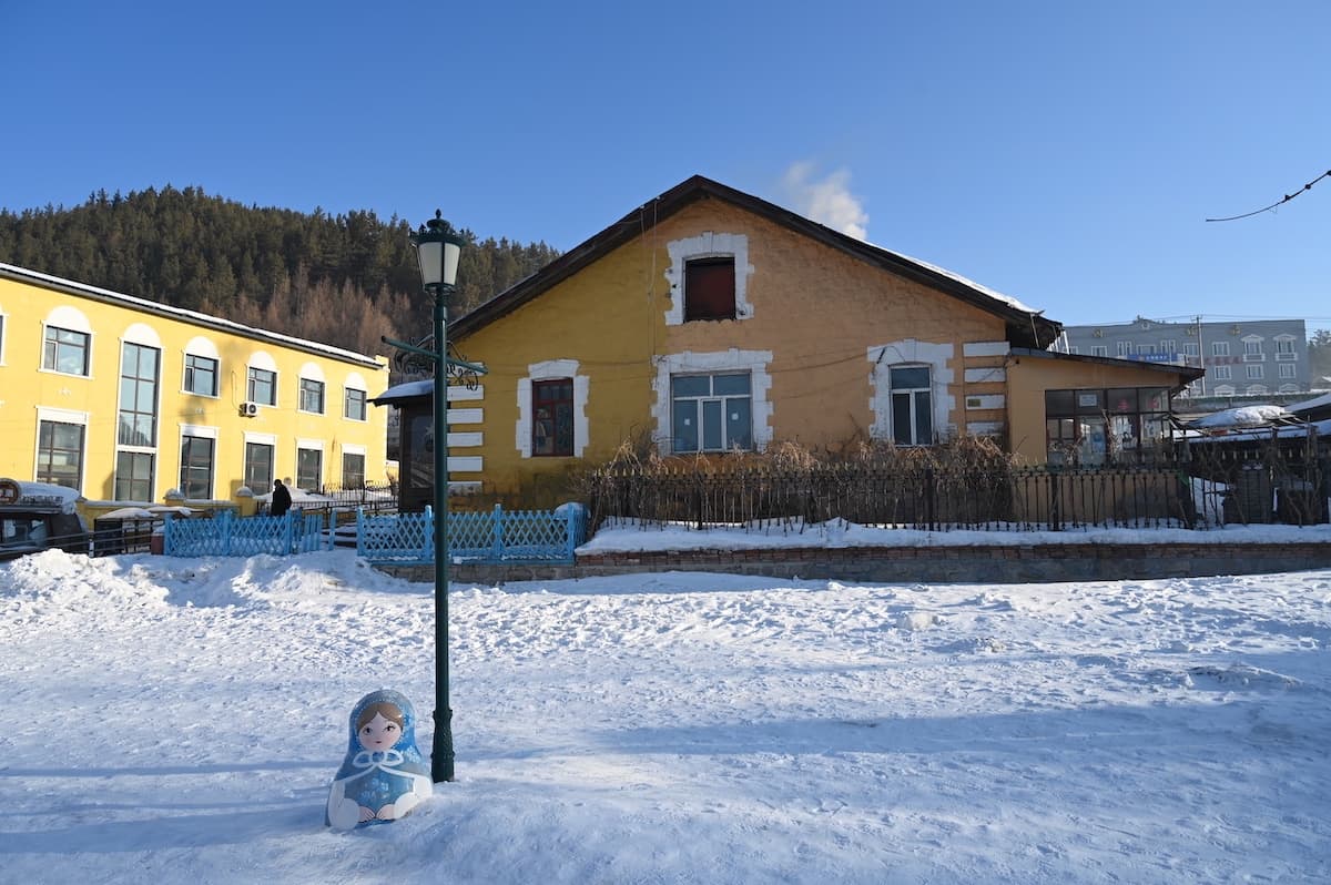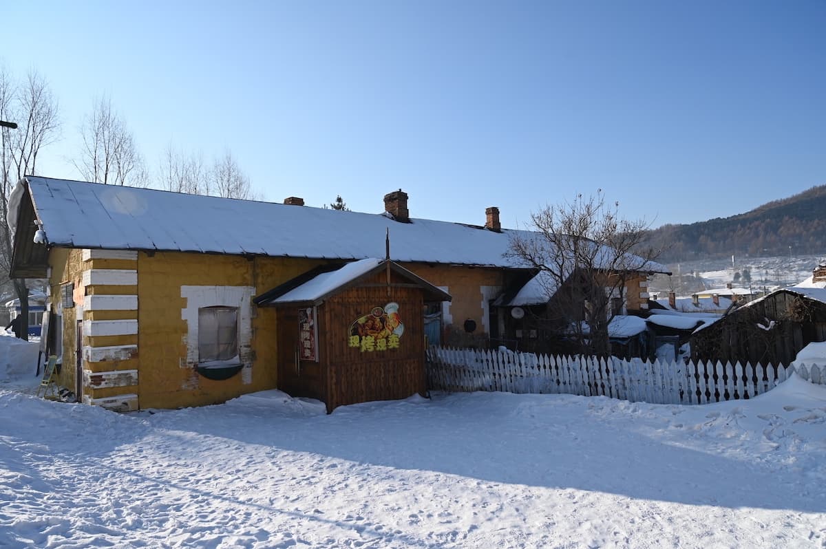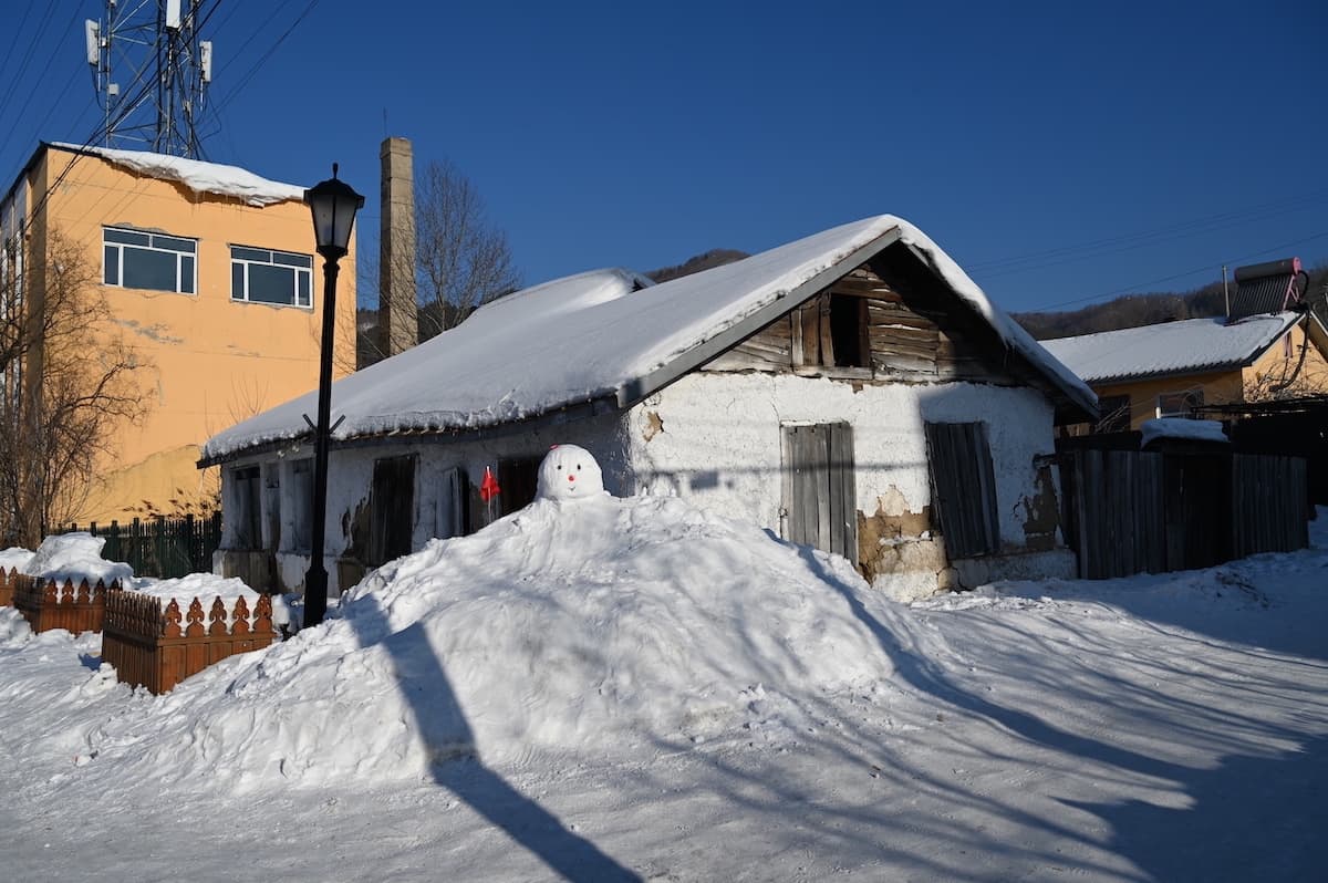 横道河子には1901年頃から1905年にかけ中東鉄道の建設などに従事したロシア人の家が256棟残っている。雪の村を歩いた。家の前に雪ダルマがつくられ、ロシア通りもあり風情のあるロシア風の家々が見られた。どこからかロシア民謡が流れてきそうな雰囲気だった。
