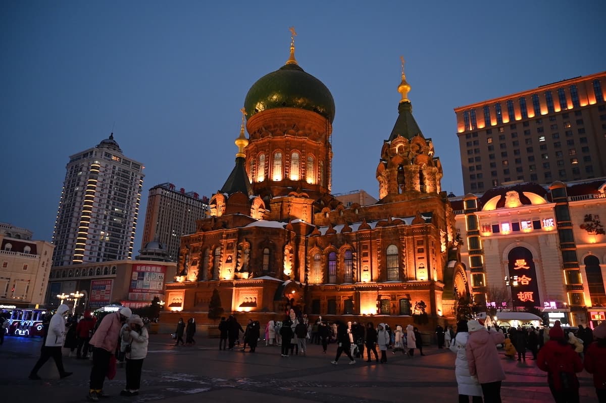 哈爾濱市の道里区ソフィア広場のセントソフィア大教会は1907年に建築が始まった哈爾濱のシンボルのような建物である。1907年は中国では清の光緒帝33年の時代。元はロシア商人の資金で、ロシア兵が中東鉄道建設時に建てた教会。二度再建されている。高さ52mあり、2千人が収容できる大教会である。鐘楼には7つの金が7色の音を奏でる。現在は哈爾濱市の建築芸術館として一般公開されている。
