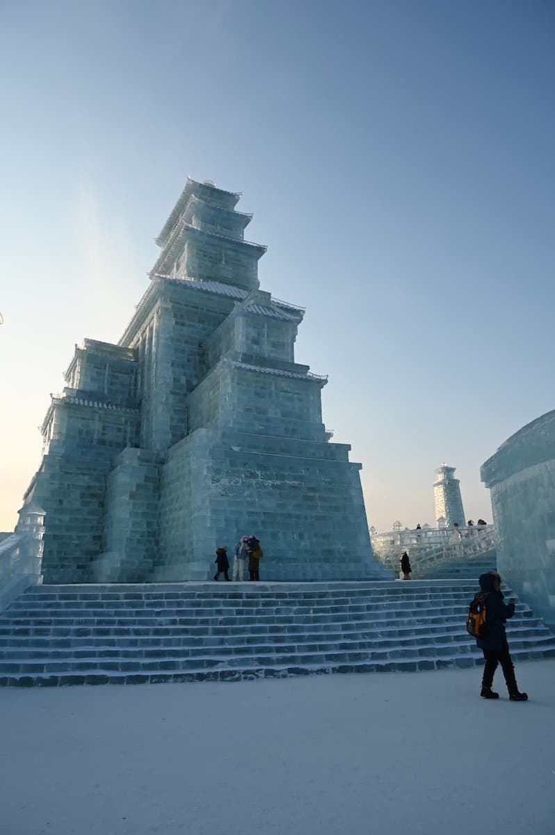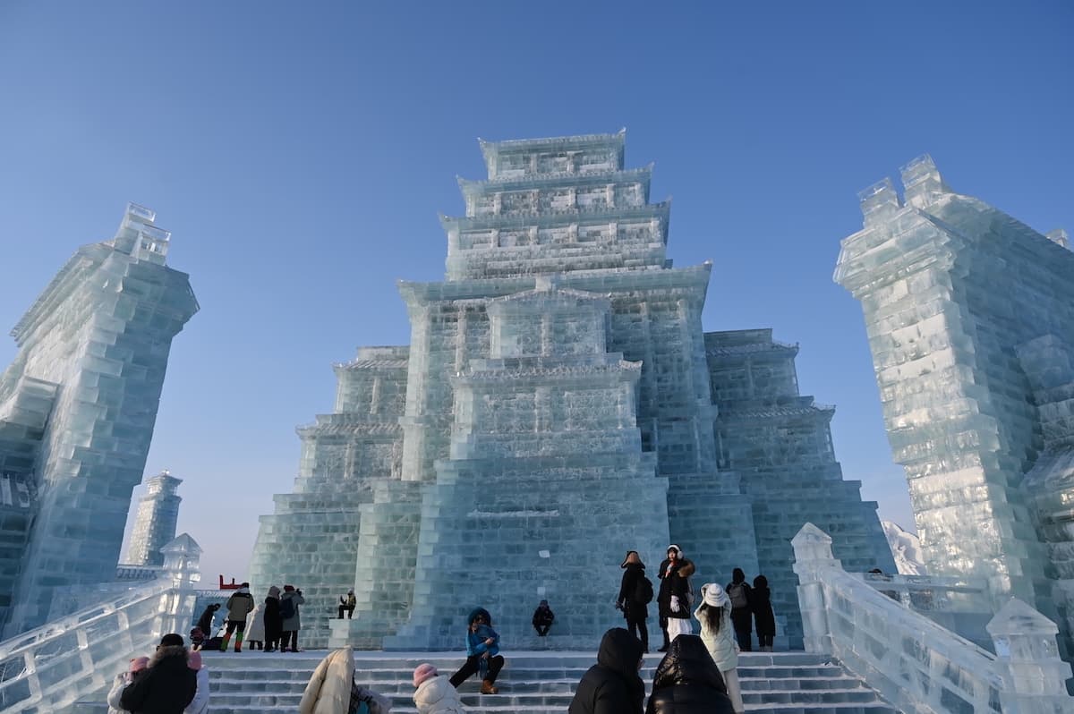 広い会場には驚くような大きさと精巧な氷の建物が並んでいた。毎年、12月25日から2月28日の期間開催されるが、その年の気温などで変わるようだ。今年は12月18日開園、暖冬の影響だろうか2月15日に終了している。訪れた日もマイナス22度くらいで比較的暖かかった。