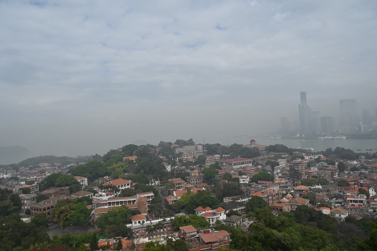 岩山に登れば島が一望できる。赤い屋根の家が島一面に見え、地中海の海岸を見ているような景色である。日光岩は鼓浪嶼の一番のビュースポットなのでたくさんの人が日光岩を目指す。岩山に登る階段は狭く。さらに頂上付近は狭いので、なかなか前に進まず、頂上まで登りつくにはかなりの時間がかかる。島の中の複雑に入り組んだ狭い道を歩いた。