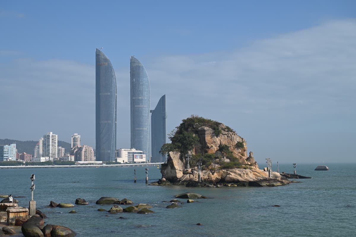 鼓浪嶼(クランユ)の海辺に行った。リゾート地を思わせる建物が並んでいる。対岸の厦門島にある双子塔も見える。山東省の青島の海岸とよく似た景色である。30年ほど前、青島に行った時には今は博物館になったが、当時は一般人も宿泊出来た、1905年の租界時代にドイツ総督府として建てられた、青島迎賓館に泊まった。その部屋には歴代宿泊した著名な人物の名前が書かれ、「毛沢東の部屋」に泊まることができた。大きなベッドも調度も当時のままだったのが思い出された。厦門は亜熱帯の気候なので、道をまたいで横に伸びた大きな榕樹(カジュマル)の木があった。