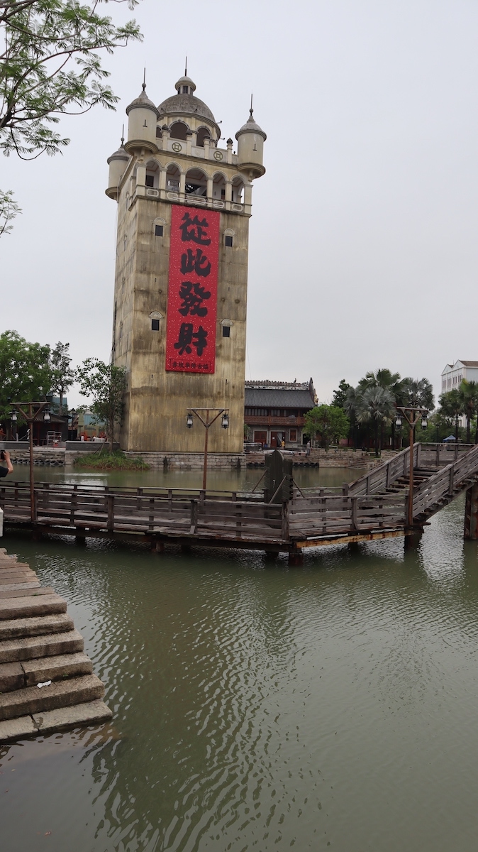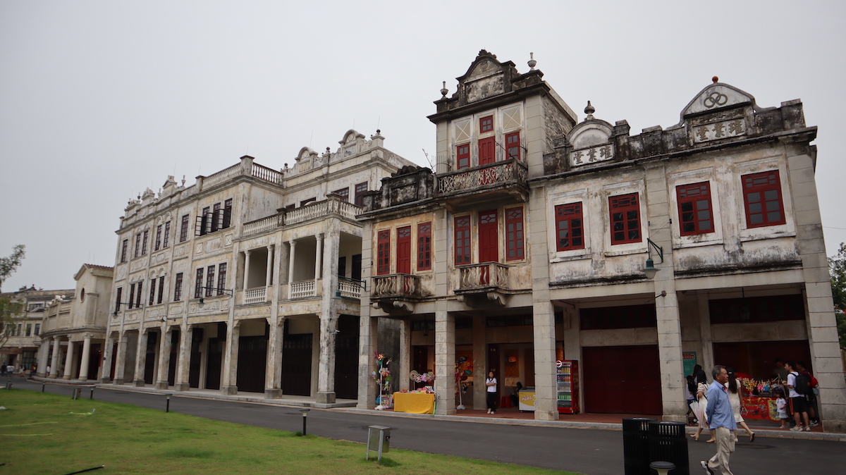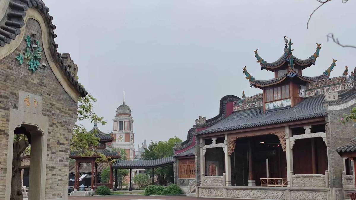 中国の歴史文化に華僑が西洋の建築文化を取り入れ、このような風格ある建物群ができた。古鎮には600もの建物がある。多くの建物は1900年代の初め頃に建てられ、宋代の1000年古鎮と華僑の100年古鎮が融合した独特の趣がある。公園内には、宋代に建てられた景福寺という仏教寺院もあり、1910年に建設が始まったキリスト教の天主経堂もある。公園内はクラシックな2階建て電車が走り、疎水の上を電車が通る時、橋が下り、電車が通過すれば橋が上がり、疎水を船が通れる。