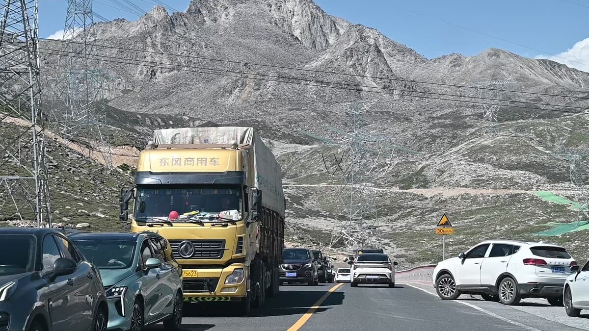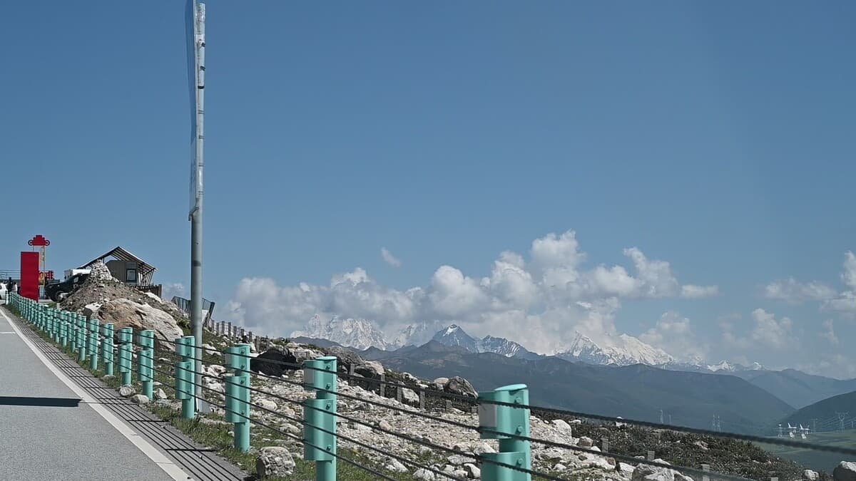 搭公寺から康定に向かったが、人気の国道318号は夏休みのため成都方面からの車線は旅行客の車で大渋滞だった。前に来た時には雪の折多(シェタ)山(感動中国100第10回)に登り、もう一度登ろうと思ったが峠の駐車場は車でいっぱいだった。走る車はSUV車ばかり。その中を迷惑そうにトラックが走っている。康定空港の滑走路脇から雪をいただく貢嘎(コンガ)が見えた。