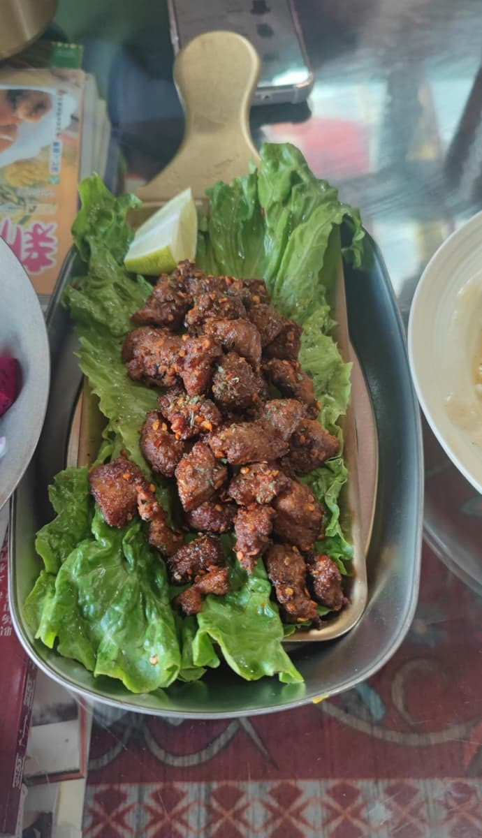 四川旅行の楽しみの一つは美味しいヤク肉や羊肉を食べることでもあり、チベット装飾のその店で柔らかく美味しい羊肉を食べた。