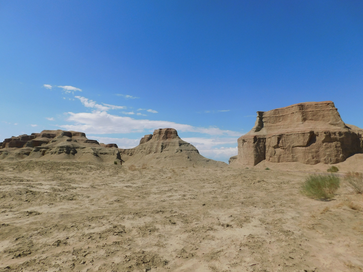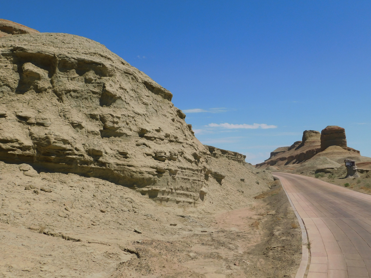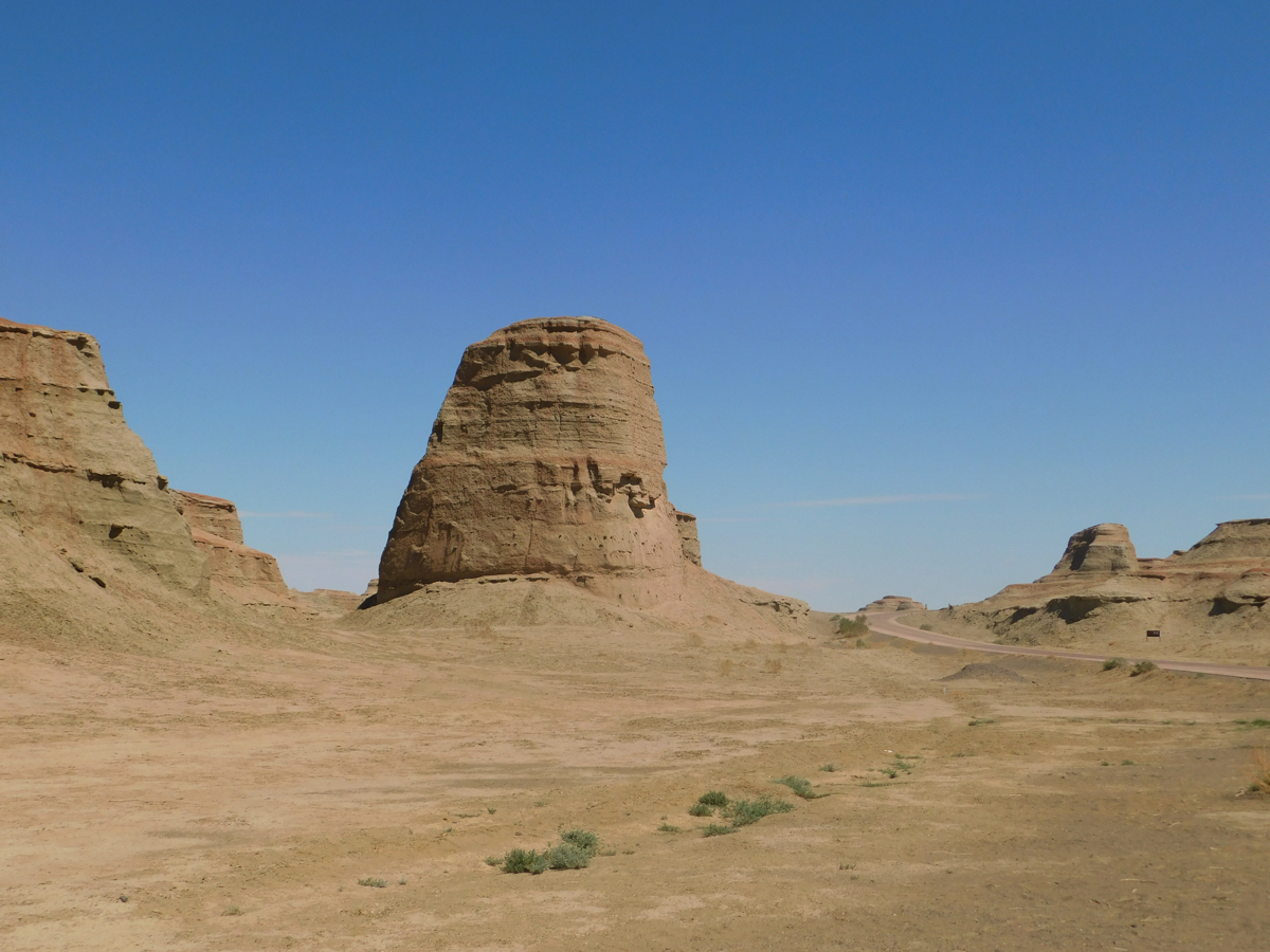 魔鬼城はジュンガル盆地の西、石油の街の克拉瑪依(カラマイ)から120㎞ほどの地にあり面積は10㎢。周囲はいかにも石油が採掘されると思える黒い台地が続く。魔鬼城には草木一つない、何億年の風雨により浸食された奇怪な形の茶色い山が続いている。魔鬼城はウィグル語の“雅丹”(ヤルダン)地形で“陡壁之丘”(切り立った崖)の意である。また“鬼斧神工”、神が鬼に斧を振るわせつくったとも言われる。魔鬼城には古代からの伝説がある。昔、そこにはお城があり人々は幸せに暮らしていたが、財宝がたまり、次第に人々は酒色におぼれて遊蕩に浸り、働かなくなった。天神がそれを諫めようとしたが人々は嘲笑い、聞く耳を持たなかった。そして天神は怒り、城は一瞬にして廃墟となった。魔鬼城では毎夜、天神に許しを願う亡き魂の叫びが聞こえると言う。唐が傾きかけた時、陳陶は「春閨夢裏の人」と、戦乱で故郷が朽ち果て、昔の楽しかった時代を春の夢の中で想う妻子のことを詠んだ。魔鬼城も訪れる人に「春閨夢裏」を訴えかけているようである。わが身に顧みて身につまされる思いがする。