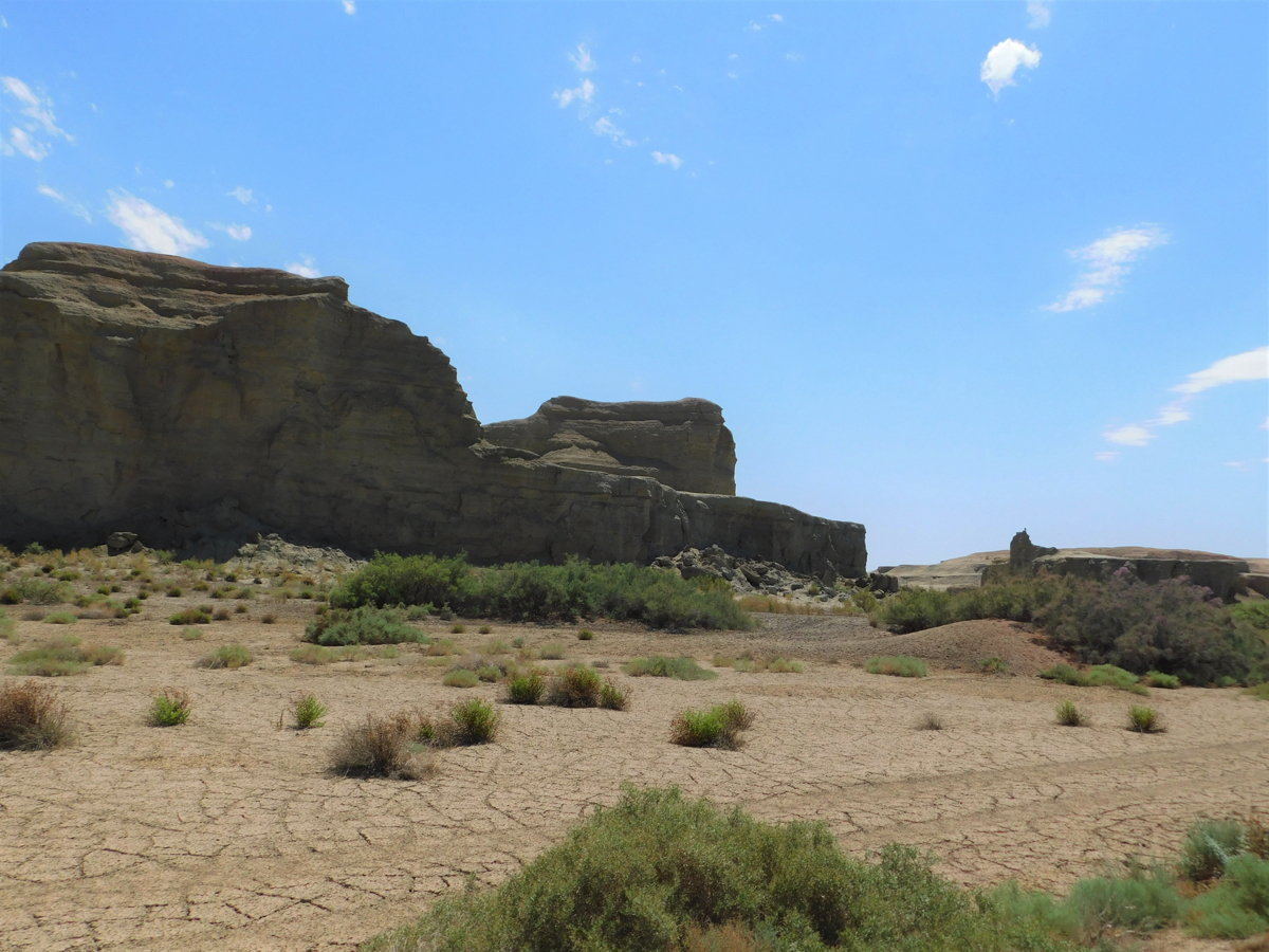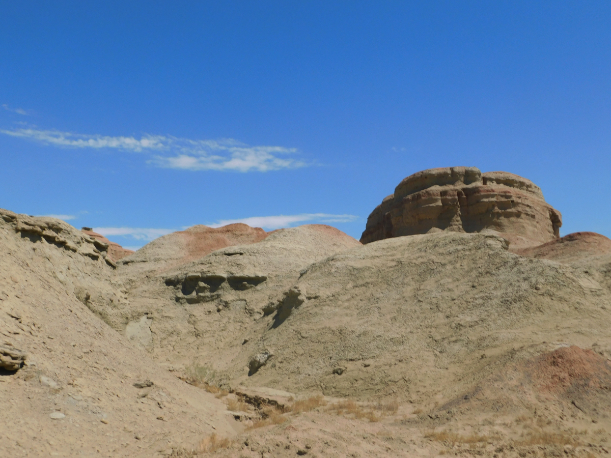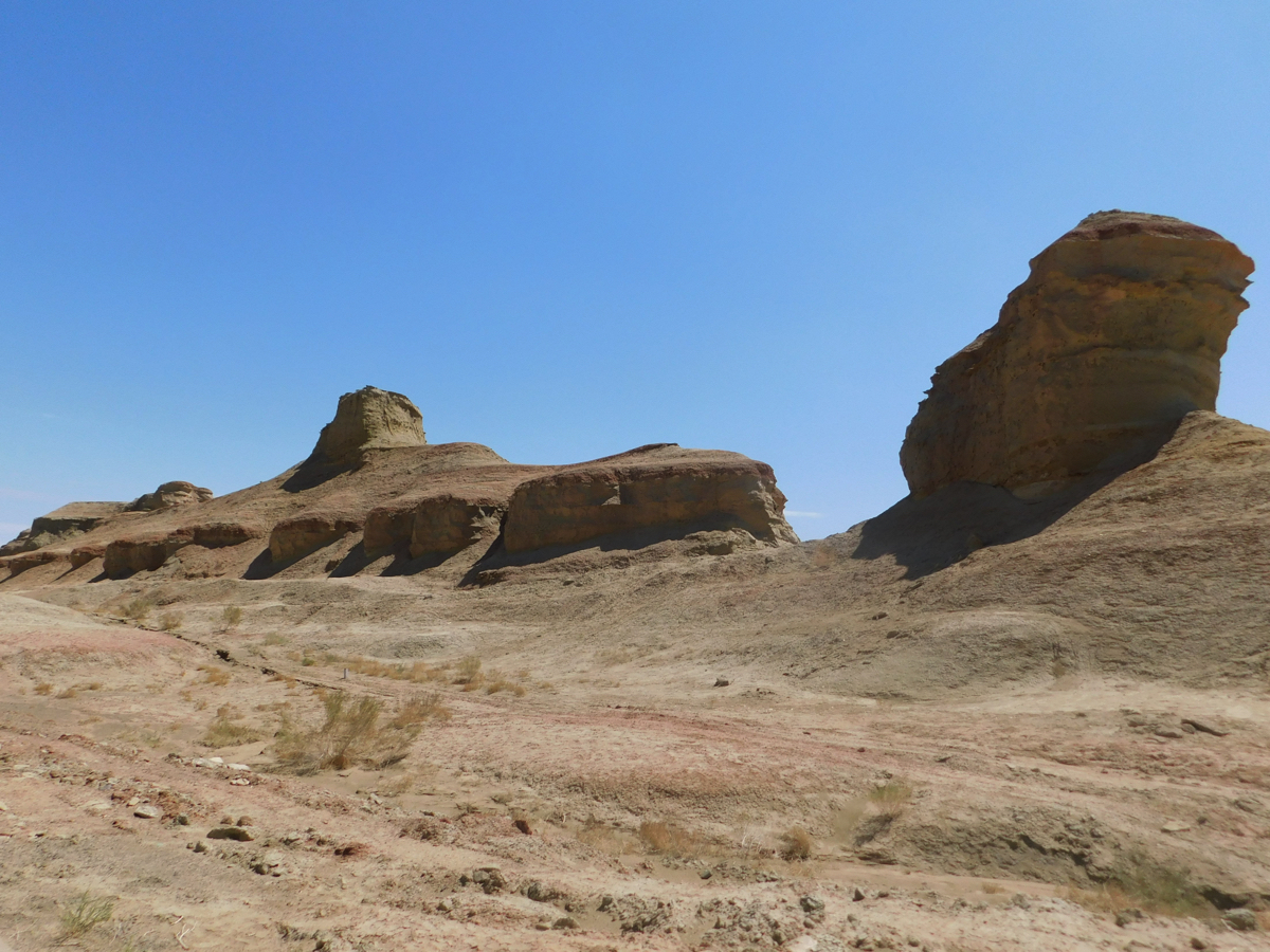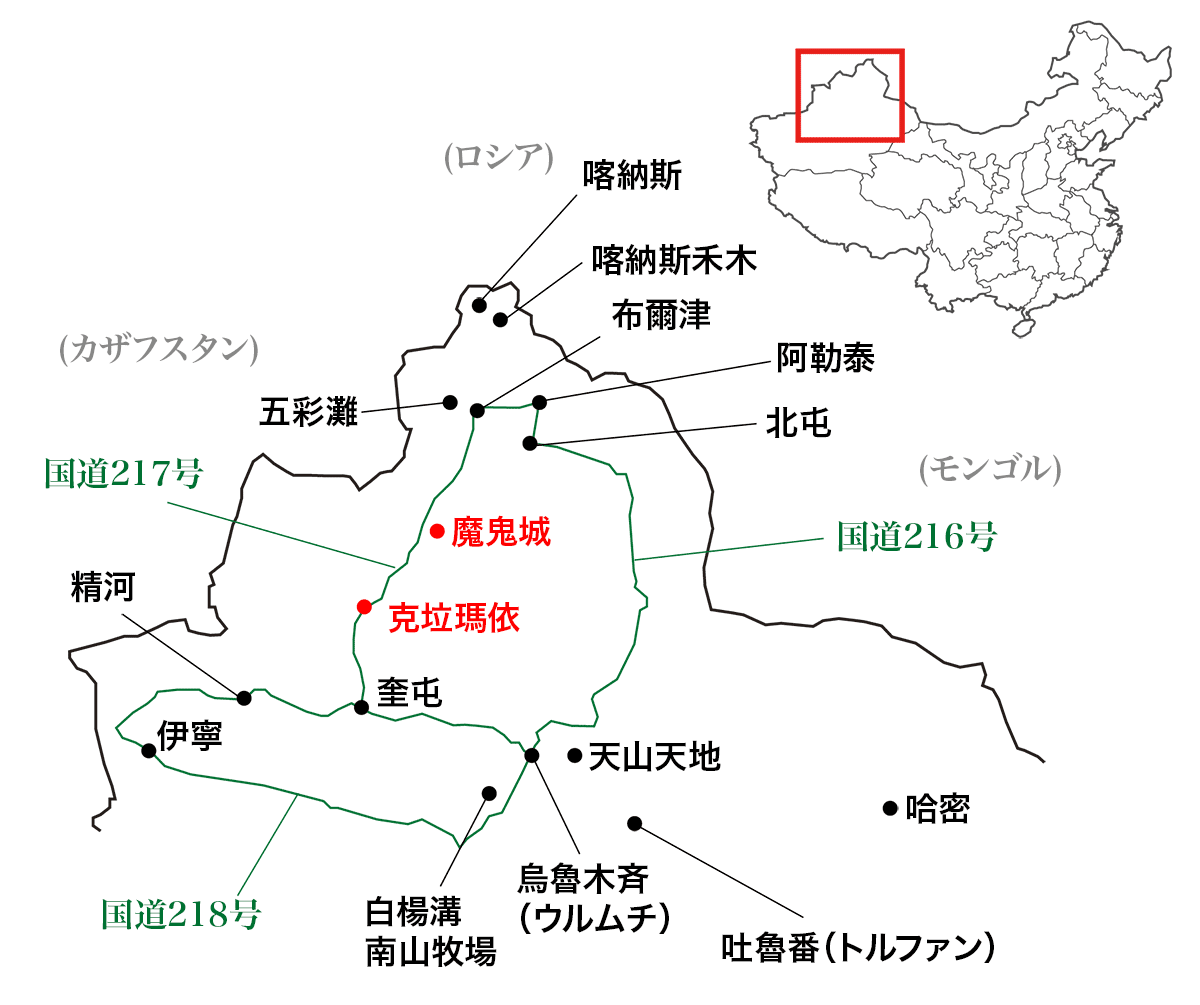 魔鬼城はジュンガル盆地の西、石油の街の克拉瑪依(カラマイ)から120㎞ほどの地にあり面積は10㎢。周囲はいかにも石油が採掘されると思える黒い台地が続く。魔鬼城には草木一つない、何億年の風雨により浸食された奇怪な形の茶色い山が続いている。魔鬼城はウィグル語の“雅丹”(ヤルダン)地形で“陡壁之丘”(切り立った崖)の意である。また“鬼斧神工”、神が鬼に斧を振るわせつくったとも言われる。魔鬼城には古代からの伝説がある。昔、そこにはお城があり人々は幸せに暮らしていたが、財宝がたまり、次第に人々は酒色におぼれて遊蕩に浸り、働かなくなった。天神がそれを諫めようとしたが人々は嘲笑い、聞く耳を持たなかった。そして天神は怒り、城は一瞬にして廃墟となった。魔鬼城では毎夜、天神に許しを願う亡き魂の叫びが聞こえると言う。唐が傾きかけた時、陳陶は「春閨夢裏の人」と、戦乱で故郷が朽ち果て、昔の楽しかった時代を春の夢の中で想う妻子のことを詠んだ。魔鬼城も訪れる人に「春閨夢裏」を訴えかけているようである。わが身に顧みて身につまされる思いがする。