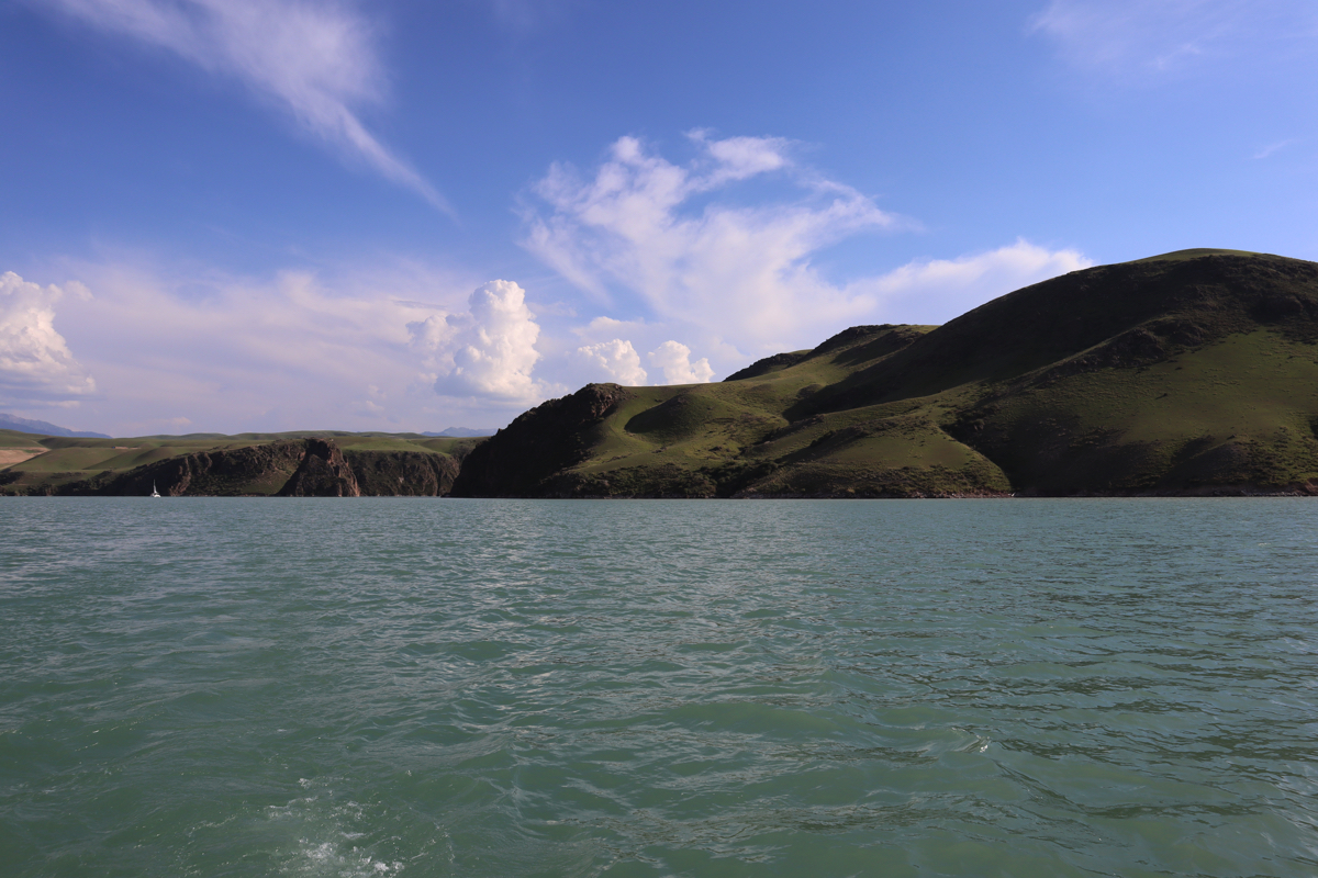 新疆を旅しているとその神秘さに圧倒される。それをさらに印象づけるのが喀拉峻(カラジュン)と濶克蘇(コクス)である。天山の豊かな水が溢れるコクスの大峡谷から直線でおよそ300㎞も行けば、そこは灼熱のタクラマカン砂漠、広大なタリム盆地である。そんな砂漠の姿が全く想像できないほどにコクスやカラジュンは深緑の草原と豊かな水の世界だった。長安の都から特克斯に嫁いだ皇女はそんな新疆の自然の変化をどのように感じたのだろうか。都を遠く離れた皇女の寂しさを草原の花や草原を吹き渡る風が癒したのだろうか。シルクロードを行く古代の旅人は天山の雪解け水で身体を洗い旅の疲れを癒したのだろうか。船に乗って喀拉峻(カラジュン)湖を巡りながら真っ白い雲と深緑の草原の対比に感動し、ふとそんなことを思った。
