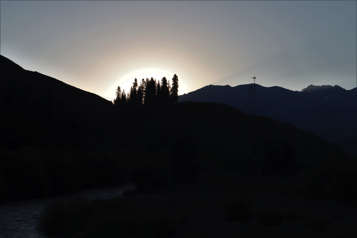 新疆には北にアルタイ山脈、南には崑崙山脈、そして中央に天山山脈が走る。アルタイ山脈はモンゴル語で「金山」とも言われる。天山山脈は東西2,500㎞の大山脈でジュンガル盆地とタリム盆地を分けている。崑崙山系はタジキスタン、パキスタン北部からカラコルム山脈から新疆南部の崑崙山脈、阿爾金(アルチン)山脈、青海省北部の祁連(チレン)山脈を含む大山系である。天山山脈には多くの氷河がありその雪解け水が谷の草原を潤して世界自然遺産をつくっている。天山山脈を縫うように走る伊梨河谷からトルファンへの国道218号は浪漫の街道だった。パオと牧場、馬や牛、羊、赤や青の屋根の家を見ながら、時に牧草地へと導かれる羊の群れに道をふさがれながら、深緑の街道を走った。那拉堤を過ぎると間もなく巩乃斯(コンナイシ)溝に入って行く。真っ青な空を背に、眼前に広がる大草原に向かい感動の声を上げ皆で万歳をする。雪山の上に浮かぶ手につかめるような真っ白の雲、その道は心に残る浪漫の回廊だった