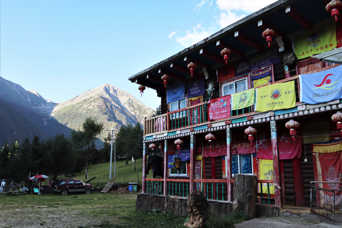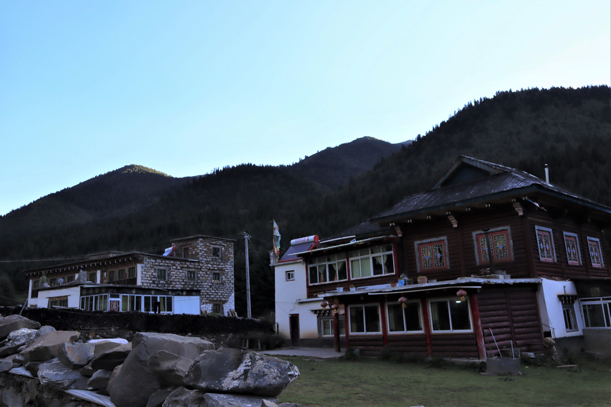 党嶺村は甘孜藏族自治州丹巴県の西北部にある海抜4千m以上の山々に囲まれ藏族が暮らす仙境の村である。党嶺とは藏語(チベット語)で「火薬澡塘」すなわち温泉で「草坪澡塘」、直訳すれば草原の温泉だろうか。党嶺の近くに温泉が湧き出している。党嶺村の藏族の民宿で泊った。宿の周囲には西蔵(チベット)様式の家が建ち、宿舎の庭で宿のおじいさんがお茶を入れやさしく出迎えてくれた。夜半に目覚めて外に出ると見事な星空が空を埋め輝いていた。