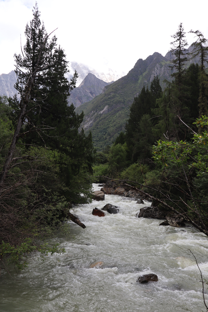 四姑娘山は四つの美しい姉妹の山の総称でもある。主峰は海抜6,250mの第四峰の四姑娘山、三峰は5,355m、二峰は5,276m、一番お姉さんの山が大峰の5,025mである。末っ子の四姑娘山はきかん気で奔放、人を寄せ付けない急峻を誇る。入山も認められていない。一番穏やかで包容力があるように見えるお姉さんの山、大峰を目指した。一日目は身体を慣らすため麓の渓谷、長坪溝を歩いた。長坪溝への登山口にはチベット仏教、黄派の斯古拉寺(別称 喇嘛寺)がある。喇嘛寺は四姑娘山の守護神とされる寺である。