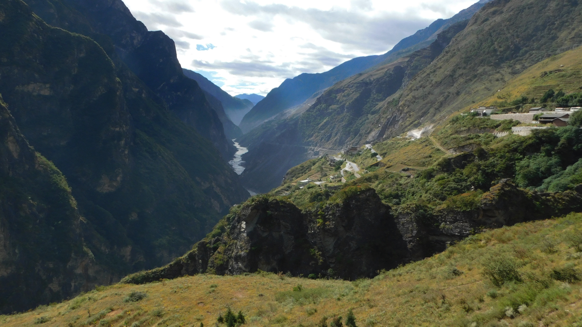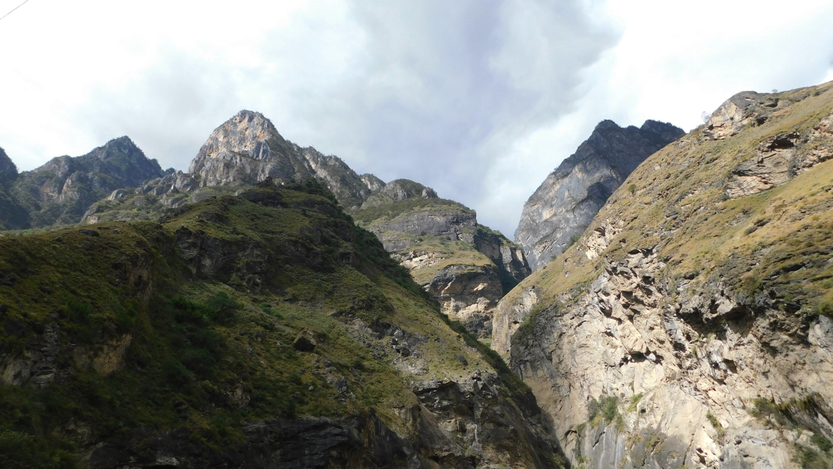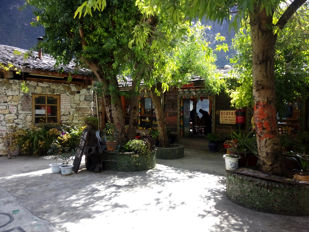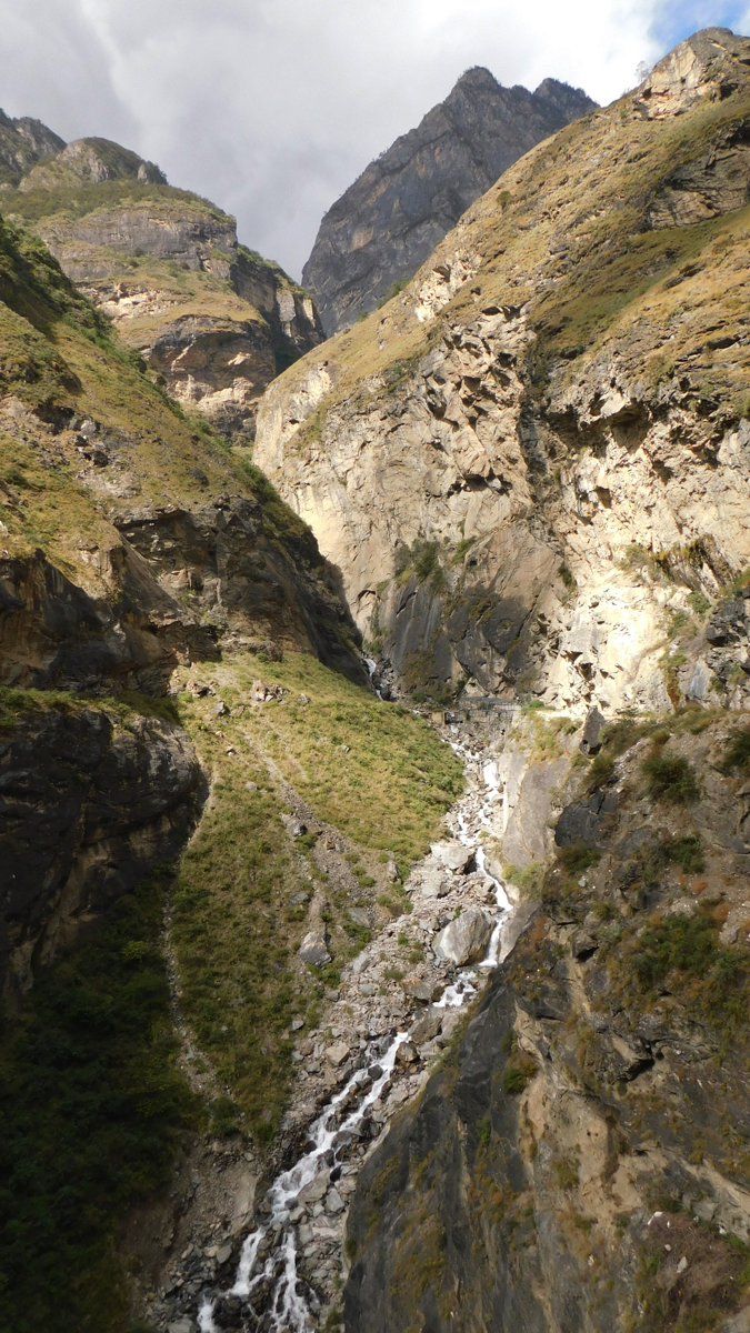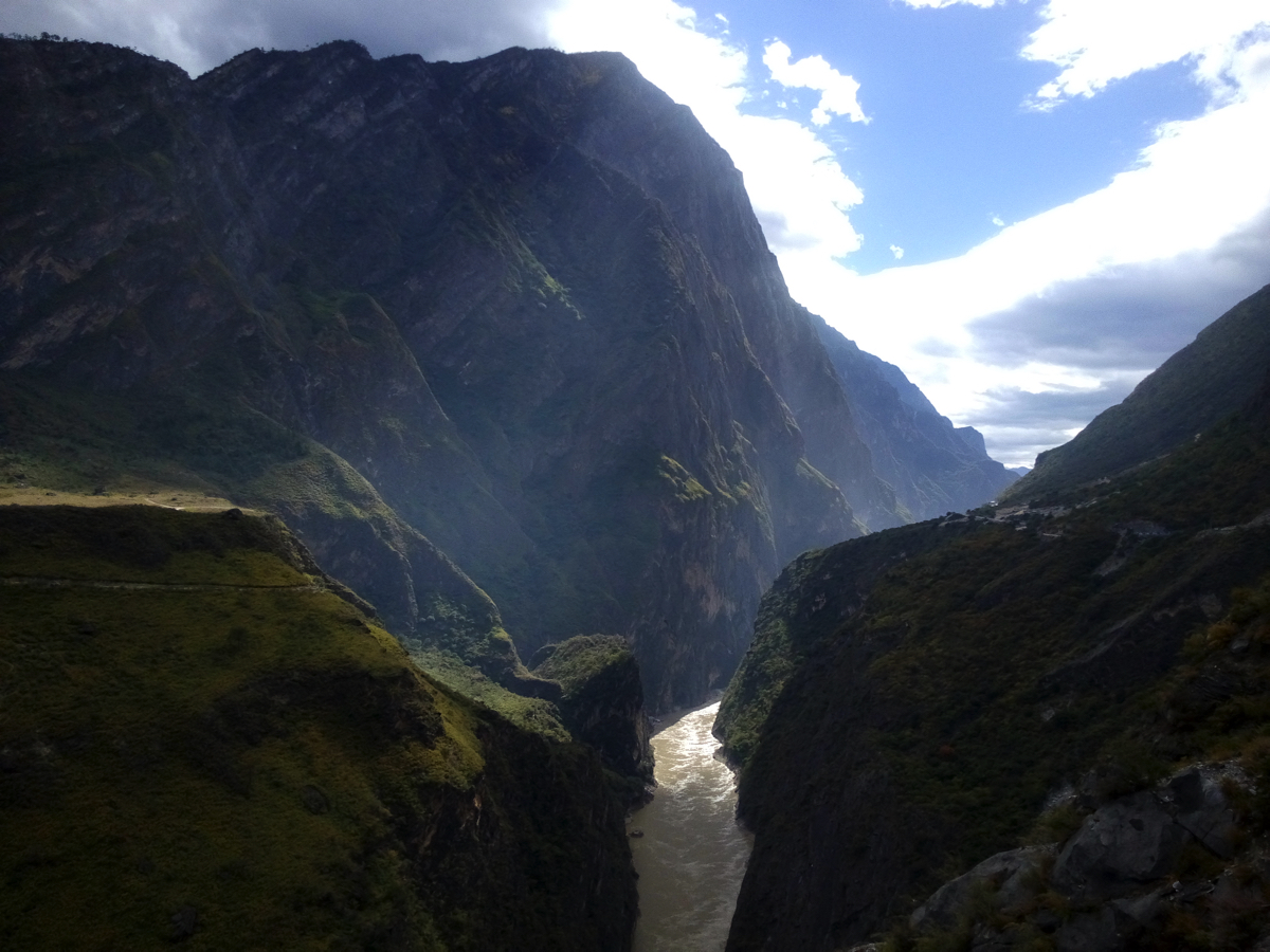 その旅は古城の街、麗(リ)江の北に聳える標高5,596mの玉龍雪山の北壁を見ながら始まった。しばし激流の渓谷、長江(揚子江)の上流域である金沙江にある虎跳峡を訪れる。雨が少ない時期で流れはまだ穏やかだったが、それでも急流で、中国でも有数の渓谷美を誇る。虎跳峡を過ぎ峡谷をはるか下に見下ろす崖路を走ると峠に少数民族が営むおしゃれな民宿とレストランがあった。レストランで昼食を食べながら窓から景色を見ると、一筋の帯のようにどこまでも虎跳渓が続いている。