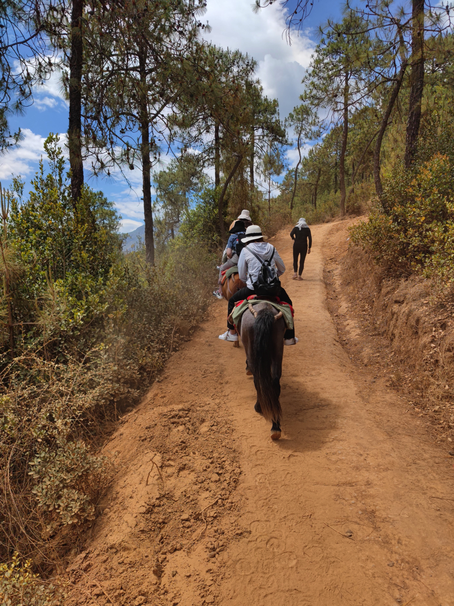シャングリラから麗江に戻り、麗江三古鎮を訪れたが、その前に茶馬古道を歩いてみたいと思い、民宿で聞くと茶馬古道で乗馬が体験できる観光コースがあると教えてもらい参加した。茶馬古道には四川からチベットに向かうルートもあるが、ここは雲南の南、西双版納から普洱、大理、麗江、香格里拉、徳欽、林芝から拉薩に向かうルート上にある。麗江は民族的にも宗教的にも茶馬古道の中継基地で、双方から物資を運んだ隊はここで交替して目的地に向かった。古代茶馬古道は唐と宋の時代にさかのぼる。チベットの主食は牛肉や羊肉、ミルクやバターで野菜がなく、脂肪分解がしにくく、そのために四川や雲南のお茶を求めた。またチベットと四川や雲南の境界地域は良馬の生産地で、ラバや馬、毛皮と四川、雲南のお茶や布、塩、日用品の交換が行われ、その商人が通った道が茶馬古道だった。チベットに運ばれたお茶はヒマラヤを越え遠くインドからヨーロッパにまで運ばれたという。