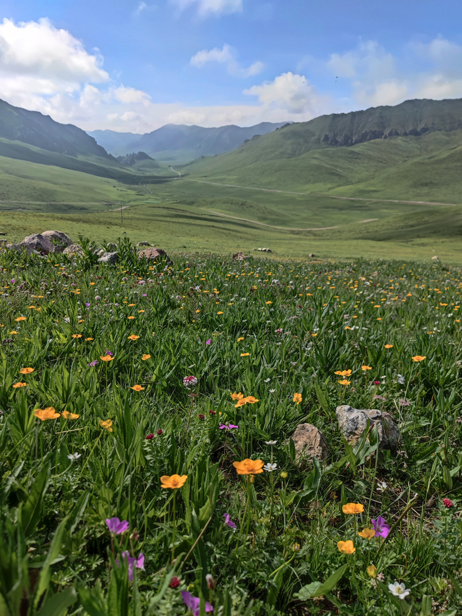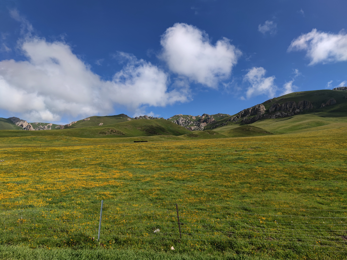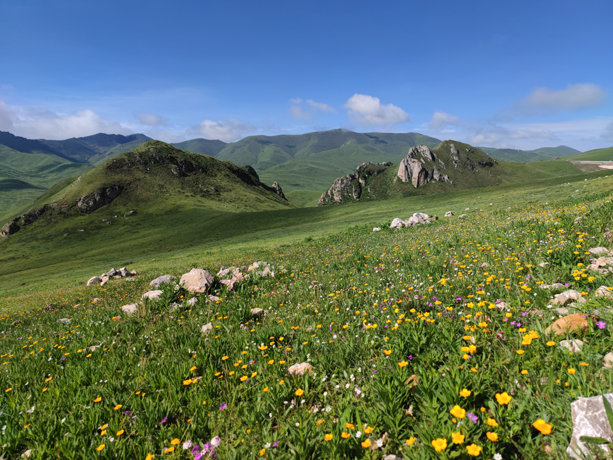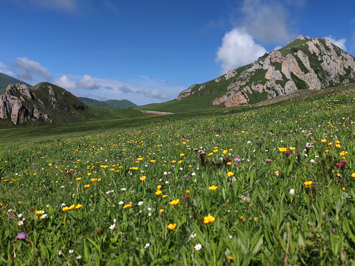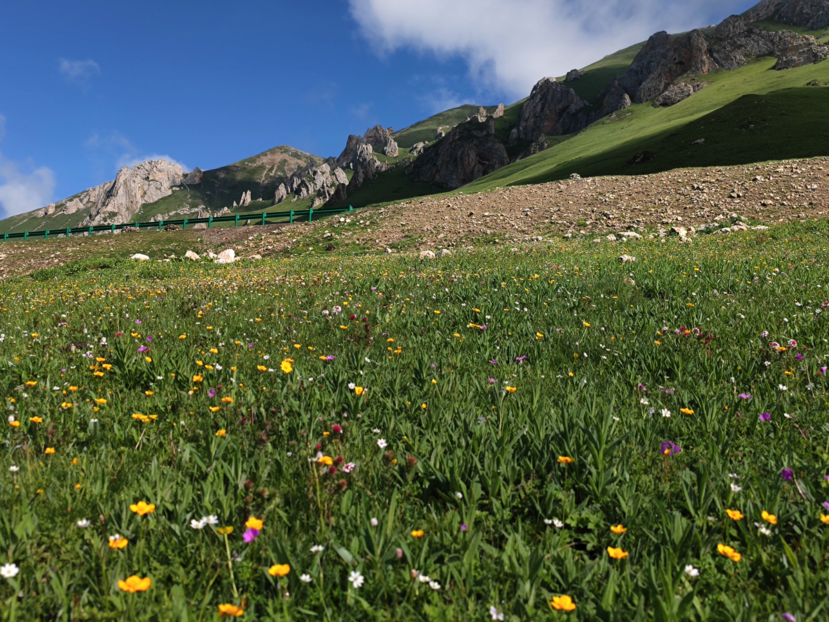 沿道には花が咲き、山の緑が眞に“蒼蒼”として美しい、しばし車を止めて沿線風景を楽しみながら瑪曲に向かう。