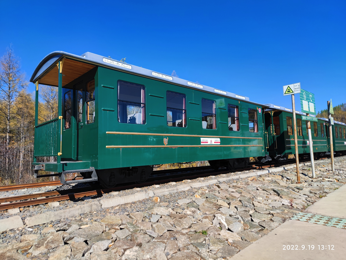 莫尓道嘎森林公園の総面積は45.5万haで、中国最大の国家森林公園である。そこには広大なカラマツの原生林が拡がっている。公園の中を観光小汽車が走り、線路はカラマツと白樺林の間をおよそ10㎞続く。カラマツ林の中、白煙を上げて走る蒸気機関車を見たかったが残念ながら蒸気機関車ではなかった。しかし、大興安嶺の中を汽車が走る風情を楽しめた。