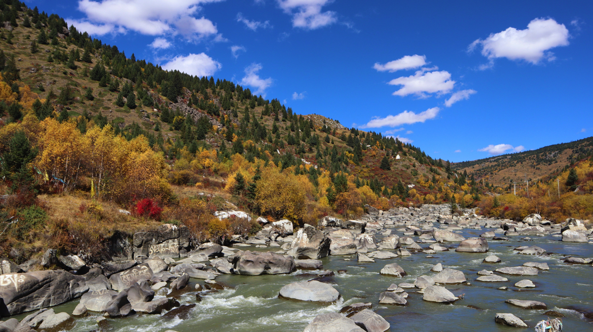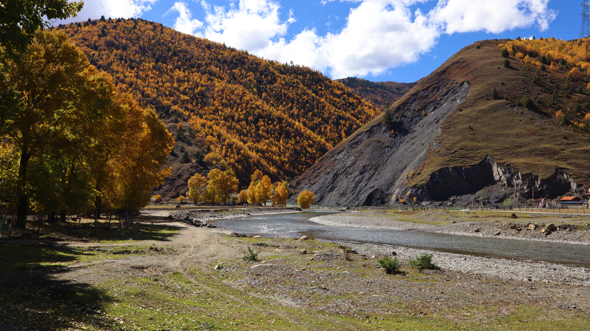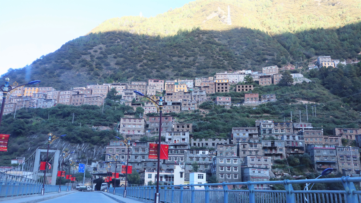 新都橋で思い出すのは感動中国100の第19回の1での新都橋の朝の風景である。その時は何も考えず偶然撮った朝の風景、川から霧が立ち込め木とチベット民家を包んでいる。そんな風景であるが、後に新都橋を紹介するいろんな写真を見ていると、どうやらそれはこの地の代表的風景のようだ。