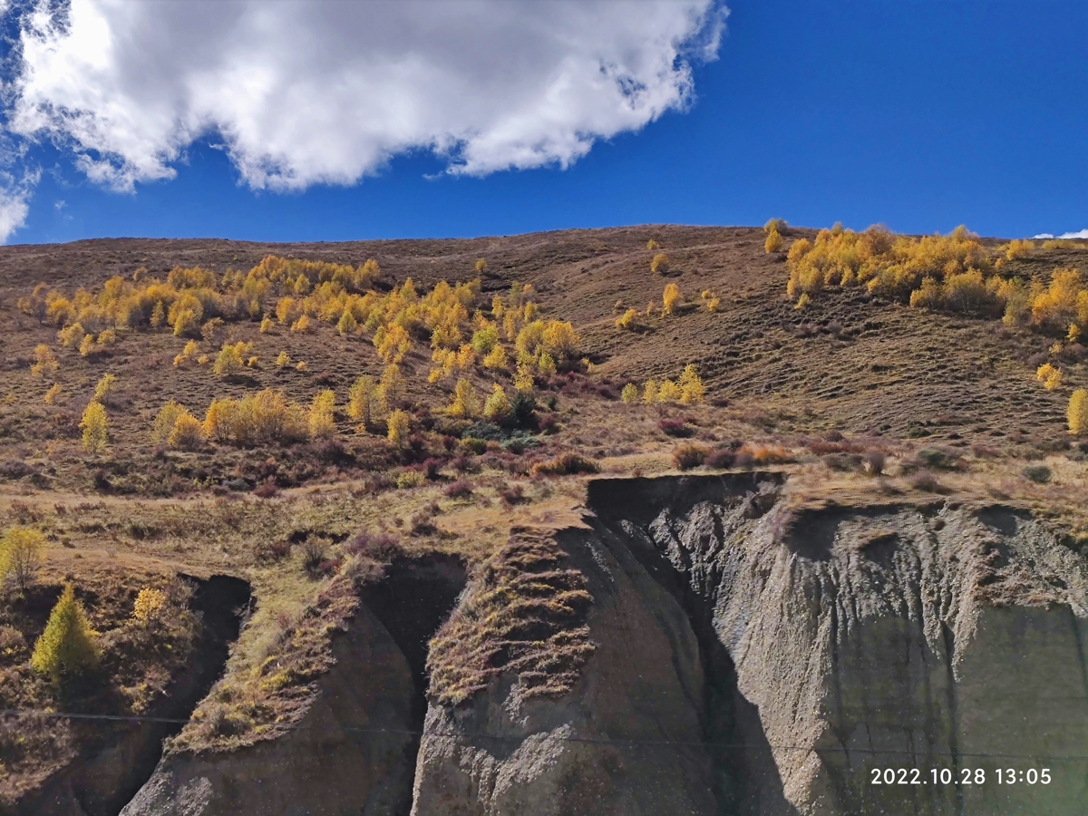 八美を後に国道318号が走る新都橋に向かった。道路はポプラの一種の白楊樹の黄色いトンネルのようだった。私が住む大阪の近くでは滋賀県のマキノ町のメタセコイヤ並木の紅葉が有名だが、よく似た雰囲気であるが八美の並木はもう少し木は低いようだ。さらに行くと墨石公園の奇岩の銀色の岩肌が紅葉の樹々と競うように陽に照らされて輝いていた。墨石公園の奇岩は季節により色が変わるという。乾燥期は浅い灰色や浅い藍色、雨季には灰色が濃くなり黒みがかった色になるという。