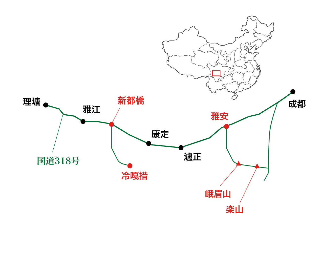 四川省・冷嘎措、楽山大仏周辺の略地図