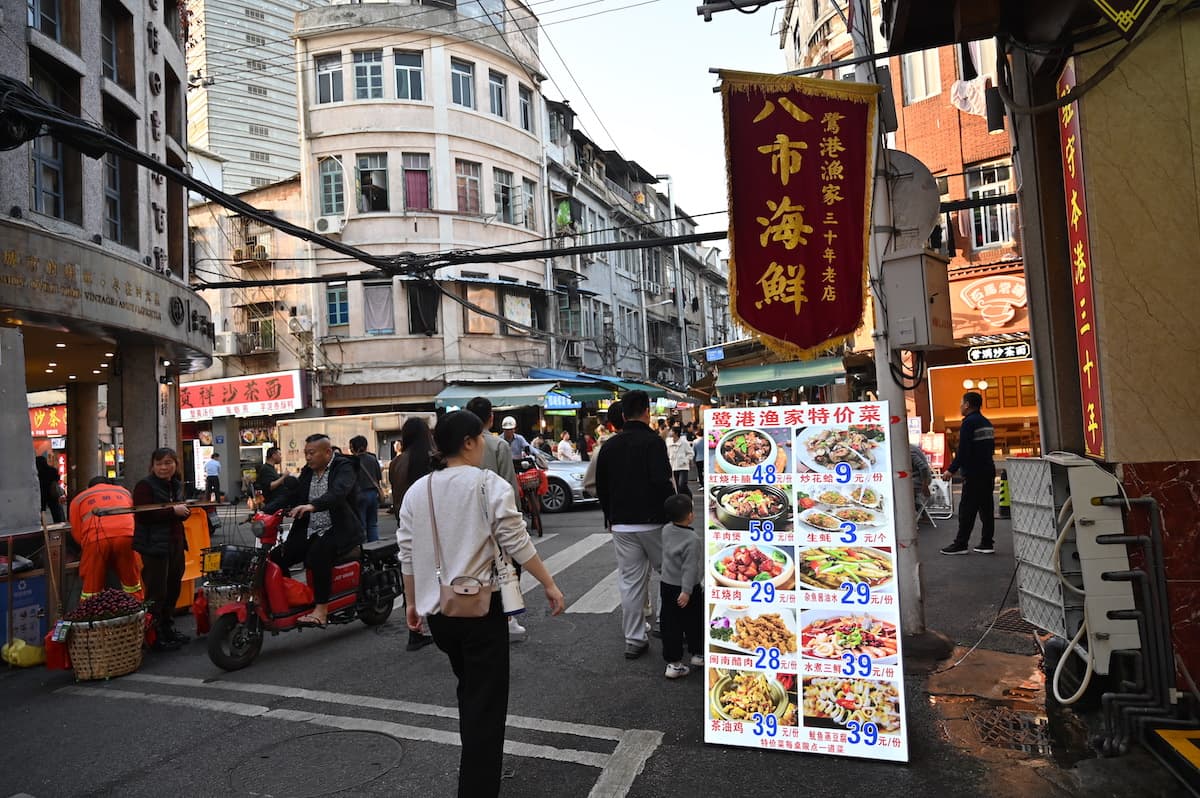 鼓浪嶼に渡るフェリー乗り場近くの繁華街、ショッピングの店がたくさん並ぶ中山路をしばらく歩き、海鮮料理の店と海鮮市場の“八市”に行き、店で魚や貝を買い、調理してもらい食べた。料金も高くはなく新鮮な牡蠣やヒラメなどの海鮮料理を食べることができた。