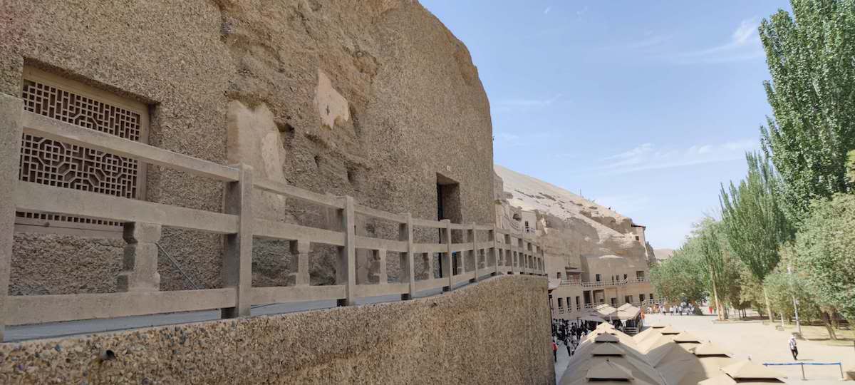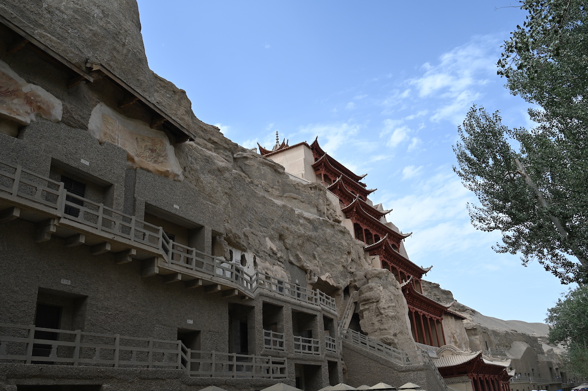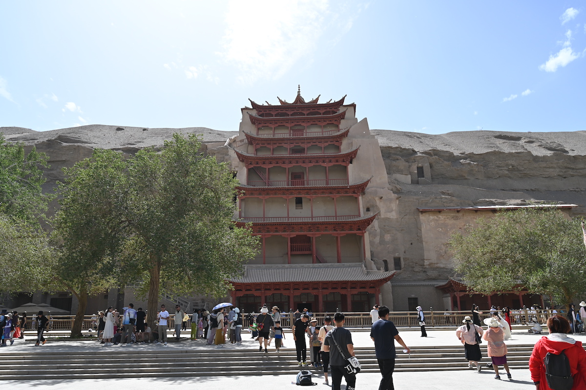 敦煌莫高窟は中国三大石窟の一つ。三大石窟は敦煌莫高窟、洛陽龍門石窟、大同石窟である。西暦366年に僧、楽福が敦煌の山に仏の光を見てそこに洞窟を掘り、その後、法良という僧が瞑想のための洞窟を「莫高窟」と名付けた。敦煌莫高窟は北魏、隋、唐、宋さらに元時代まで掘り続けられて735の洞窟があり、壁画と2400体以上の仏像がある。