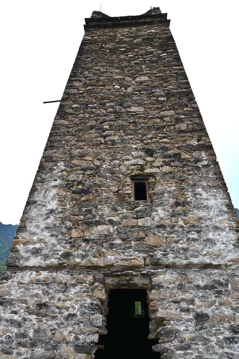 中路蔵寨は人口3,600人ほどの村。中路はチベット語で「神と人が共に仰ぎ見る理想の境地」の意。感動中国100第21回の丹巴蔵寨でも紹介したように蔵族(チベット族)や羌族(チャン族)の村には見張り台や烽火台として使われた高い塔が建っている。中路蔵寨には88の塔が残る。一番高い塔は高さ60m。塔の中に入ると、高さ2~3mほどで、階がつくられ、塔の2階に昇るには丸太を刻んだ階段を昇るようになっている。手すりもなく、丸太をしっかり持って昇らないと昇ることはできない。何かの非常時には家族が上層階に上がった後、丸太を上に上げて後から昇る敵を防いだのだろう。